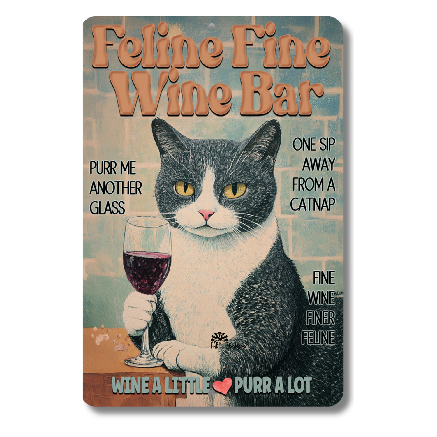 Gray Tabby Cat Feline Fine Wine Bar Sign, Sip & Scratch pub metal tin kitty wall art