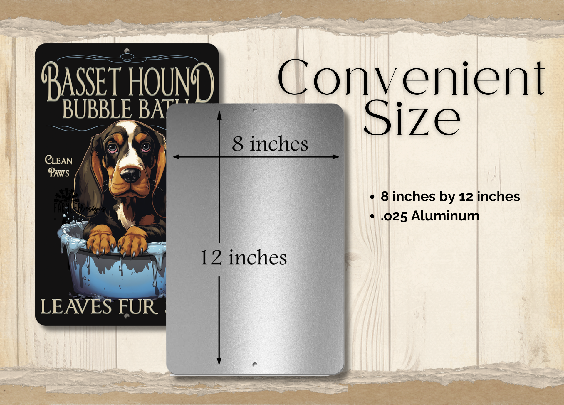 Basset Hound Bubble Bath bathroom dog in bath tub sign, 8x12, metal