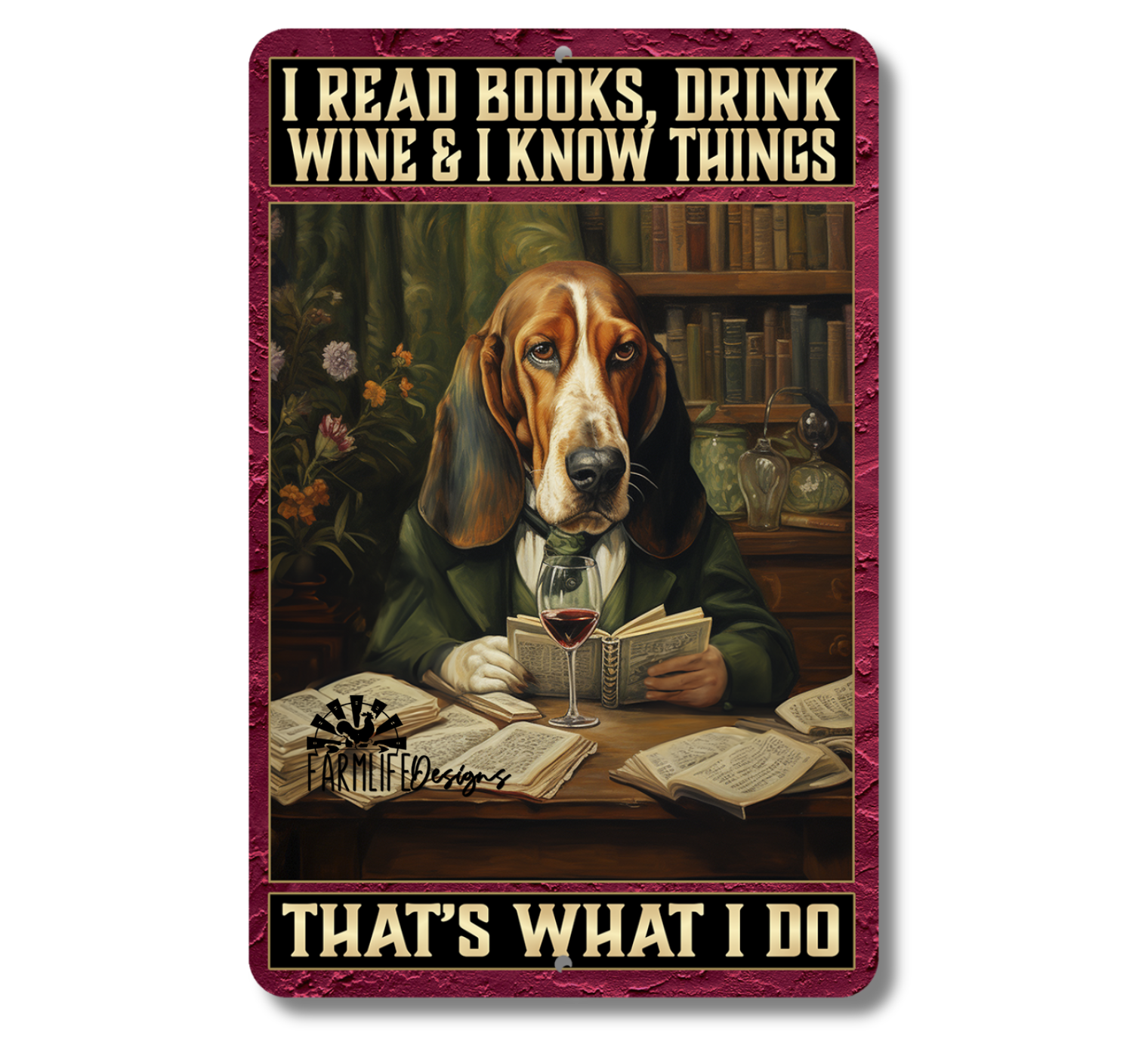 Basset Hound Sign, Read Books, Drink Wine, Know Things, dog sign