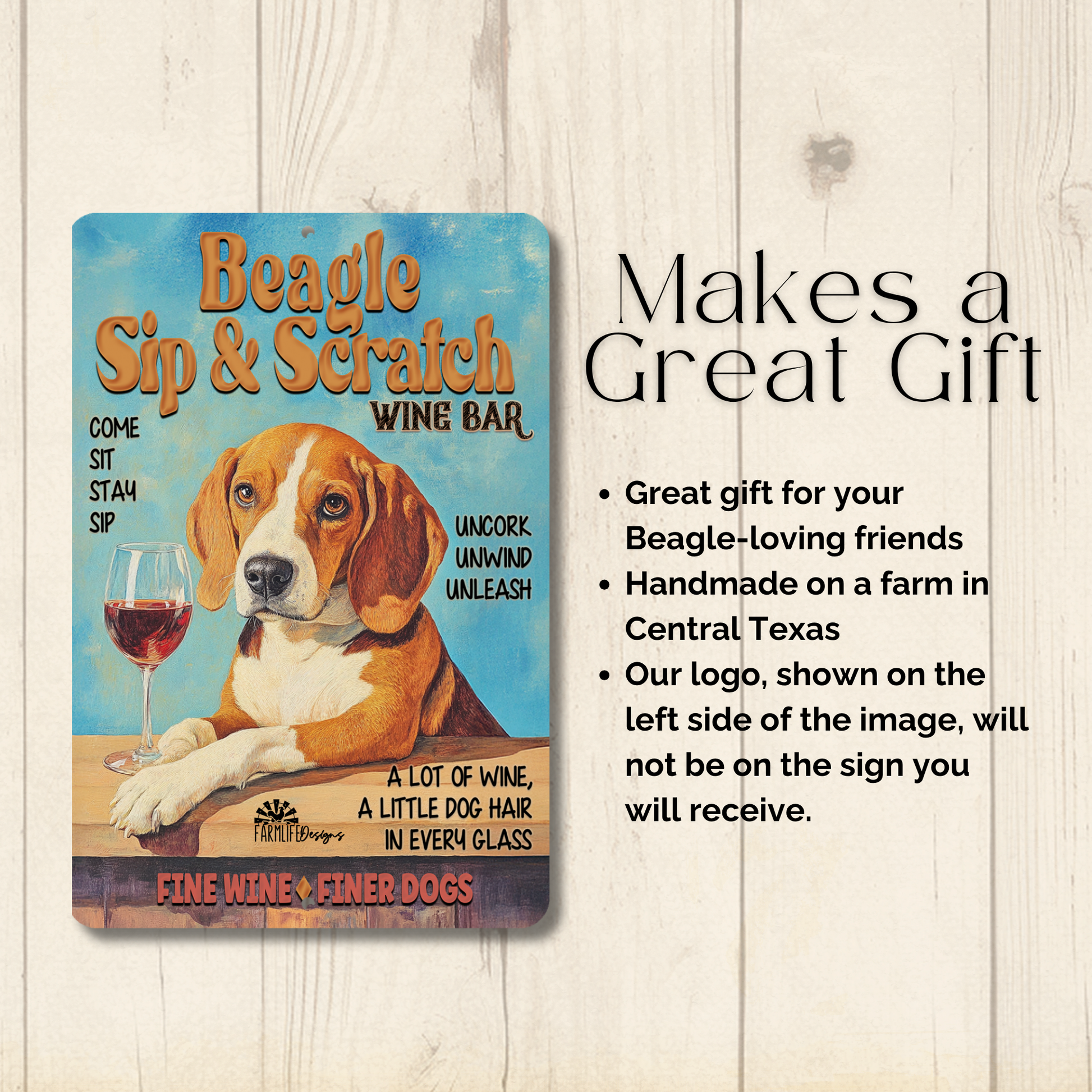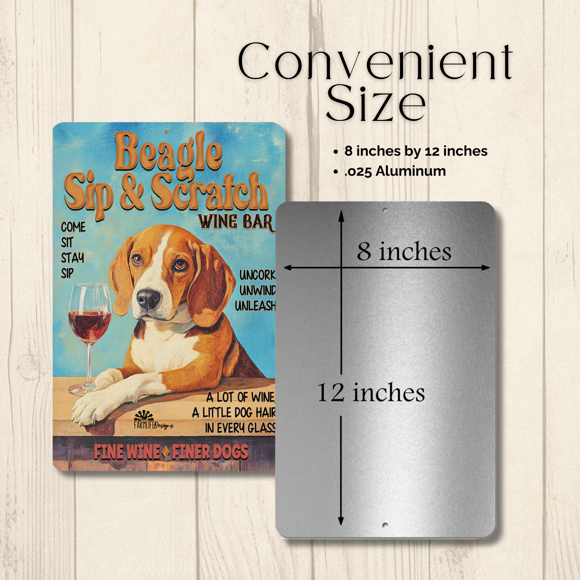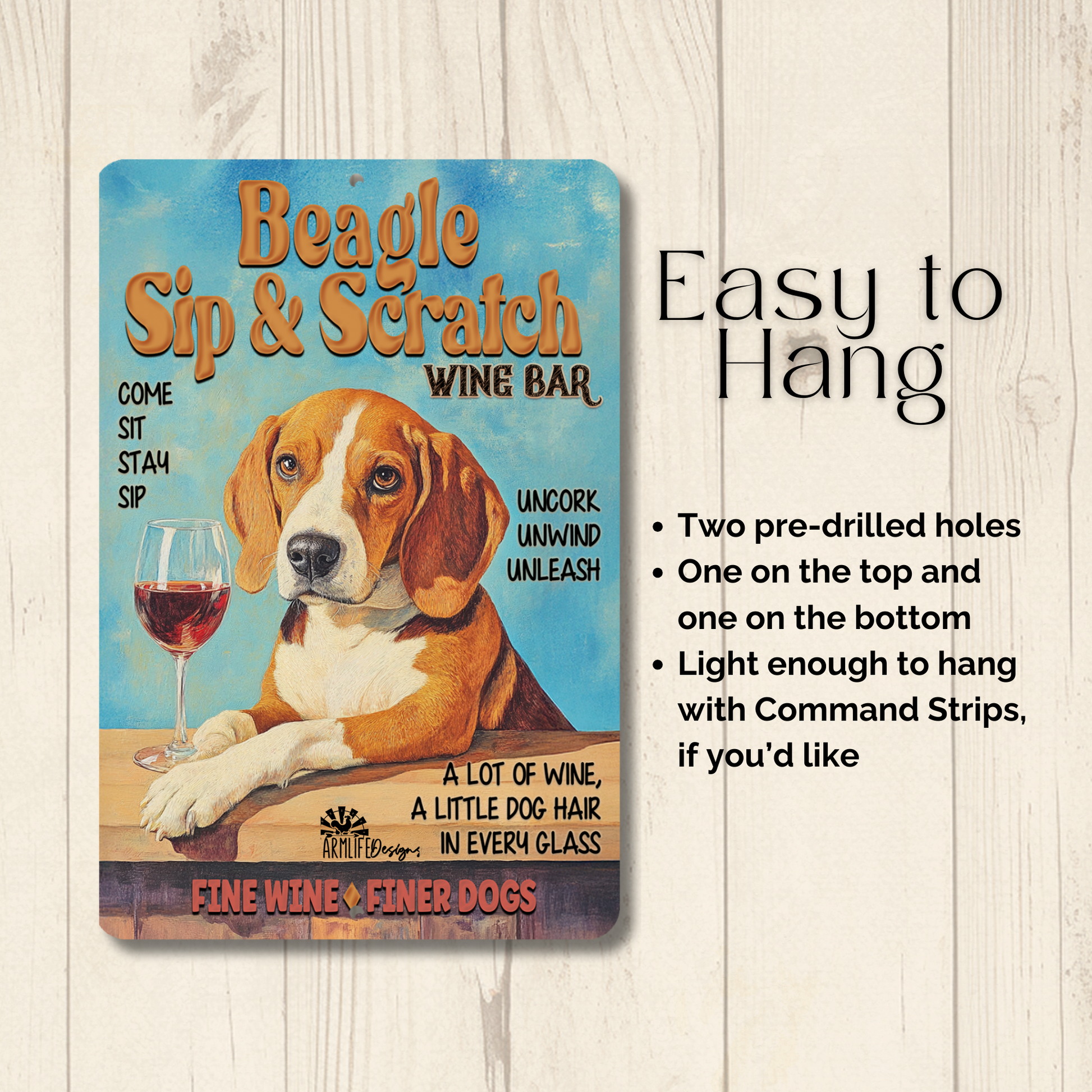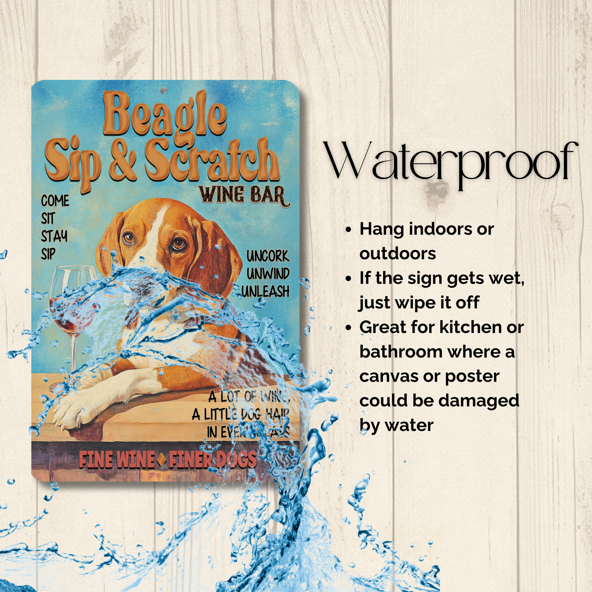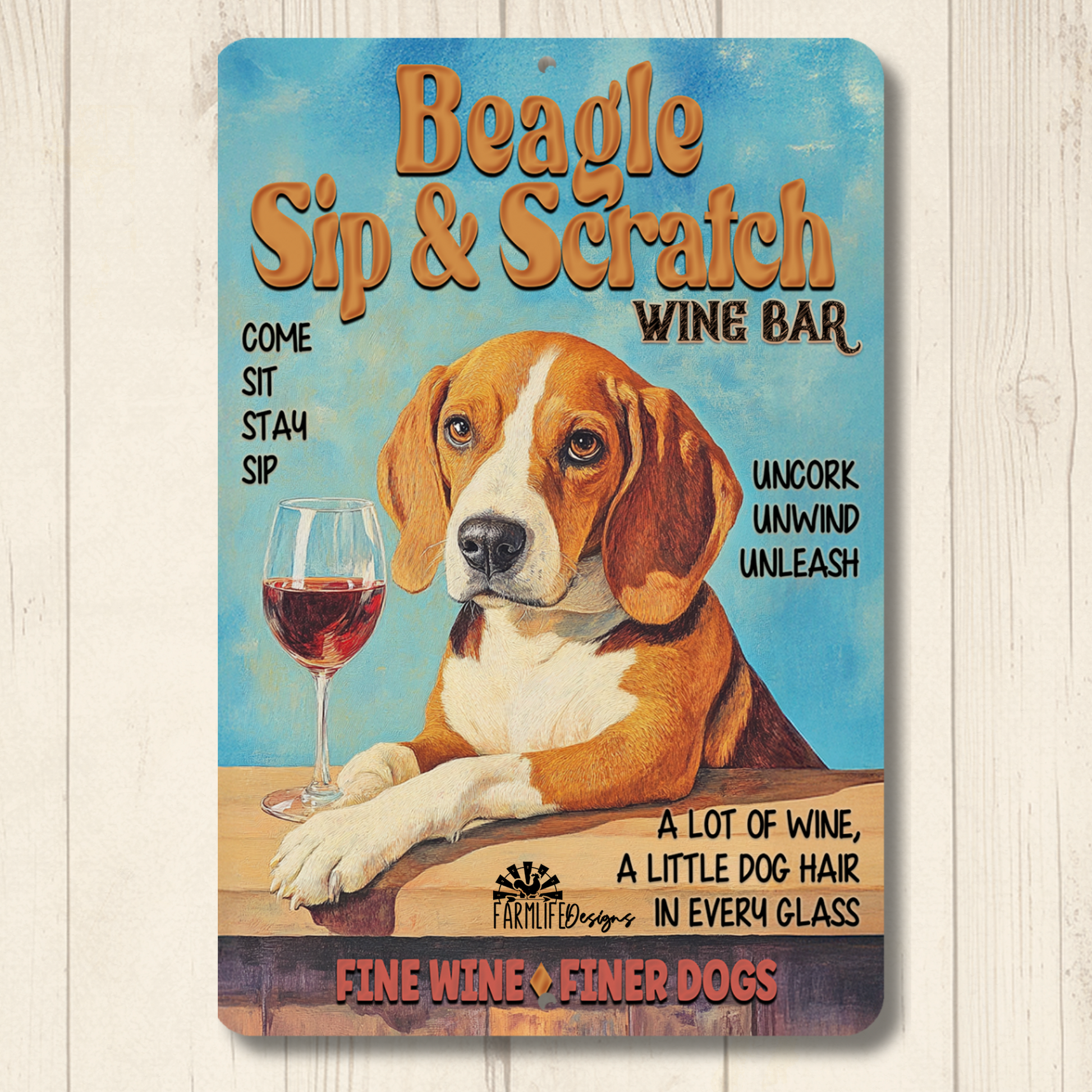 Beagle Wine Bar Sign, Sip & Scratch pub metal tin dog wall art