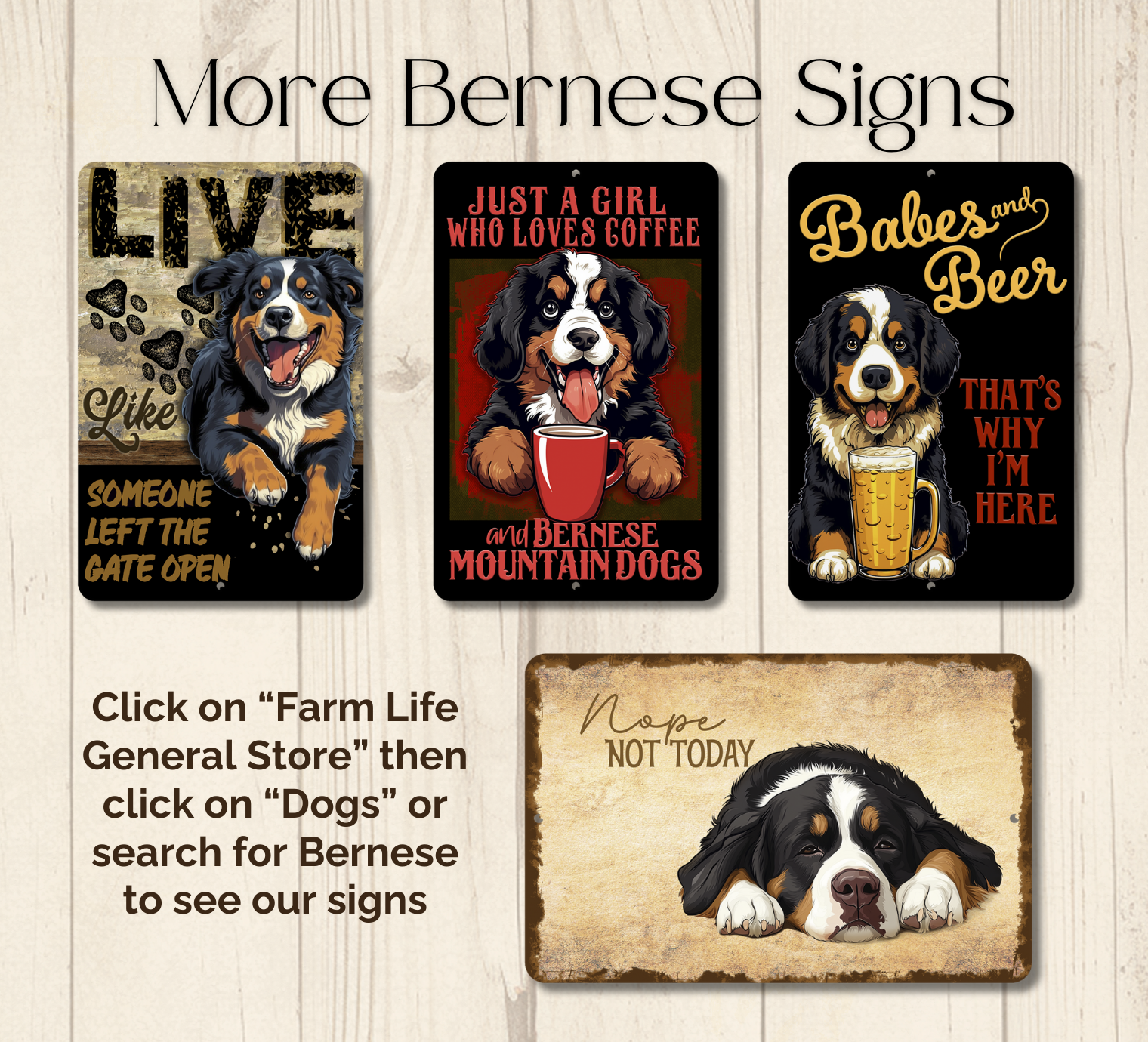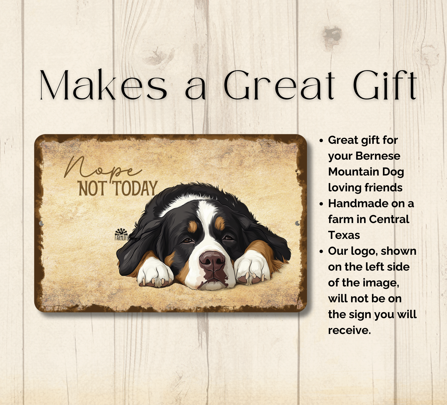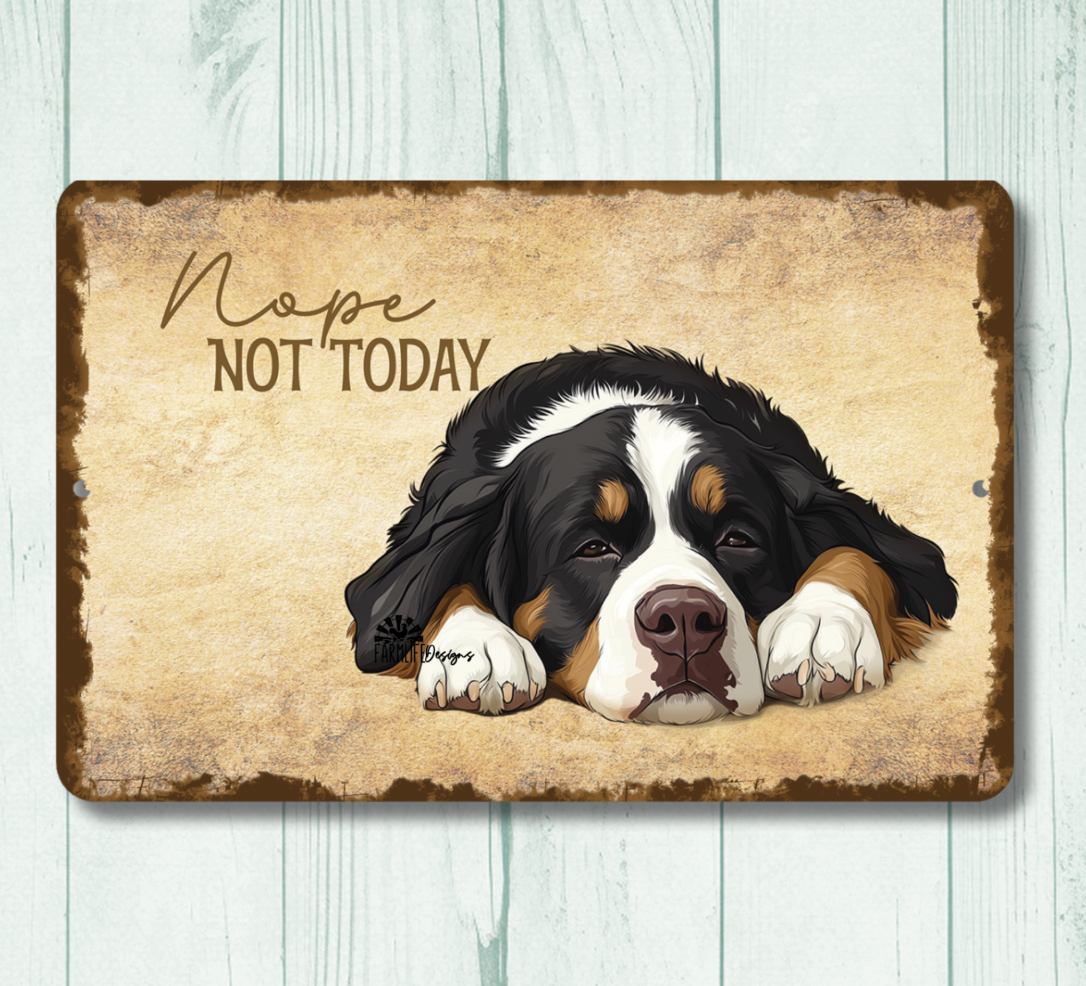 Bernese Mountain Dog Sign Nope Not Today Funny Lazy Dog metal tin indoor outdoor BMD