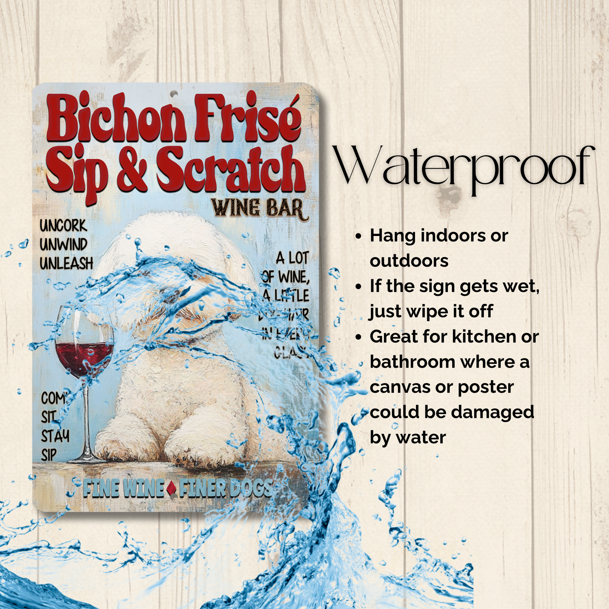 Bichon Frise Sip & Scratch Wine sign, a unique handmade addition to your home.  This sign would look great on in your bar, den, man cave, or wherever you entertain.