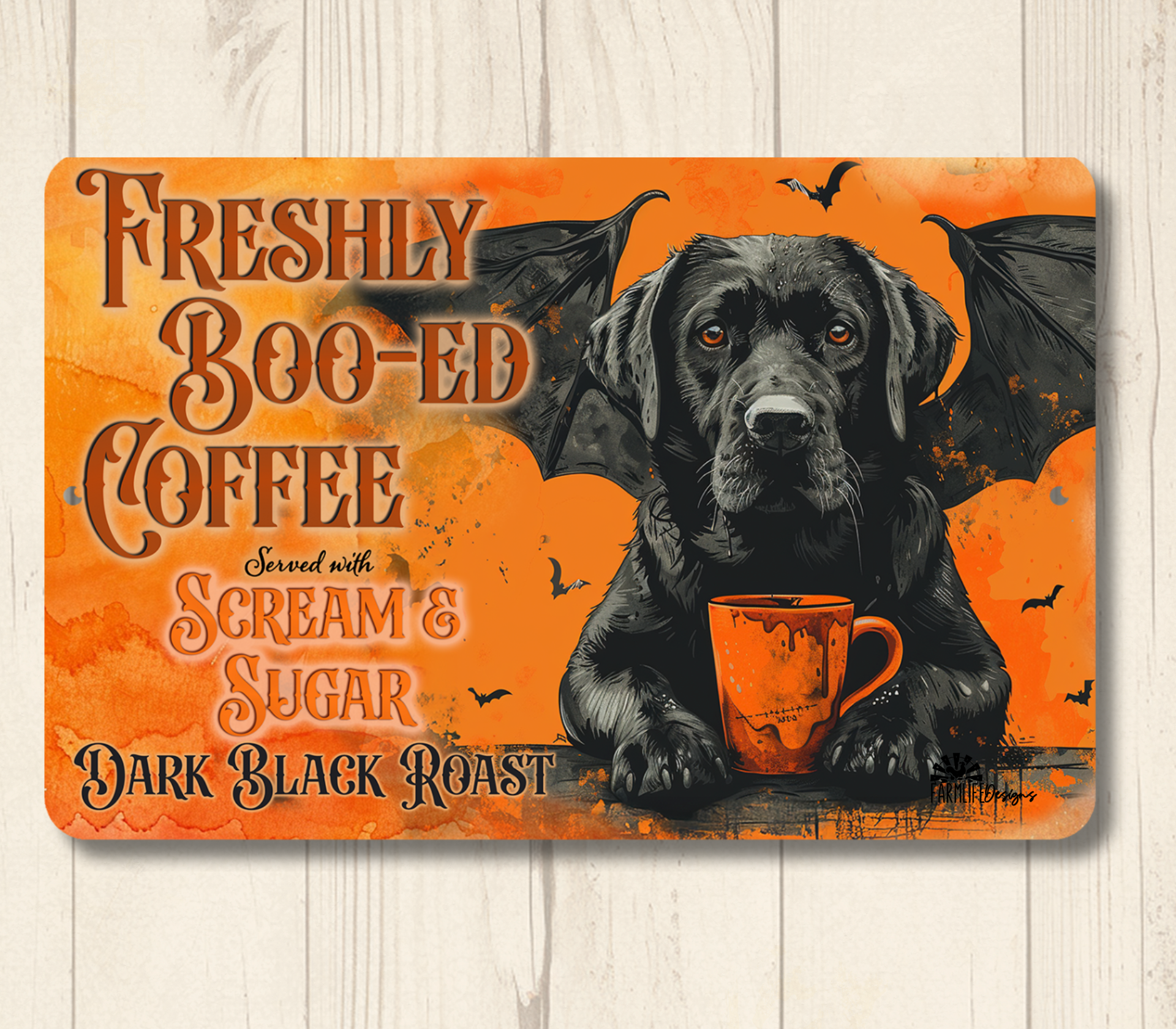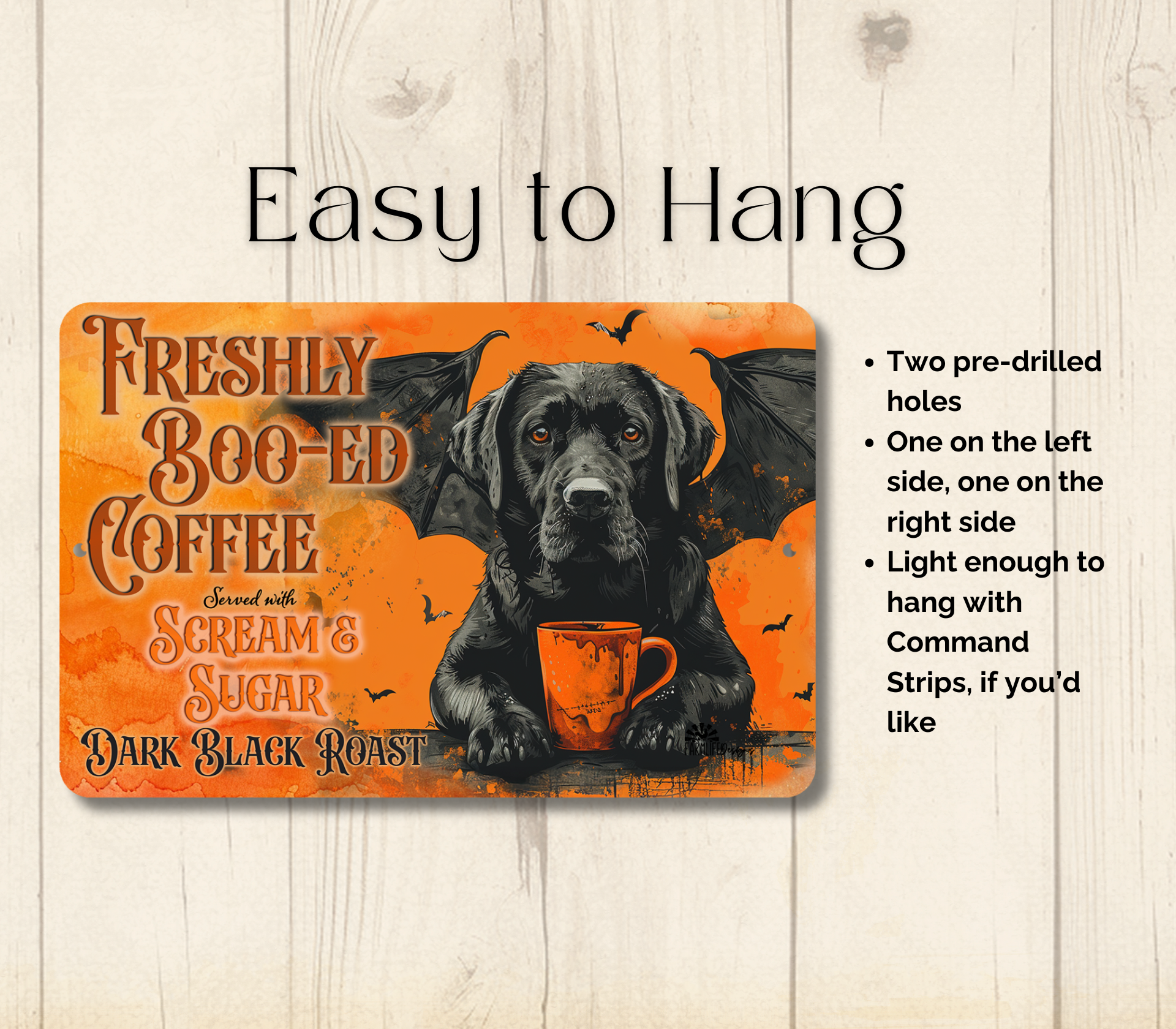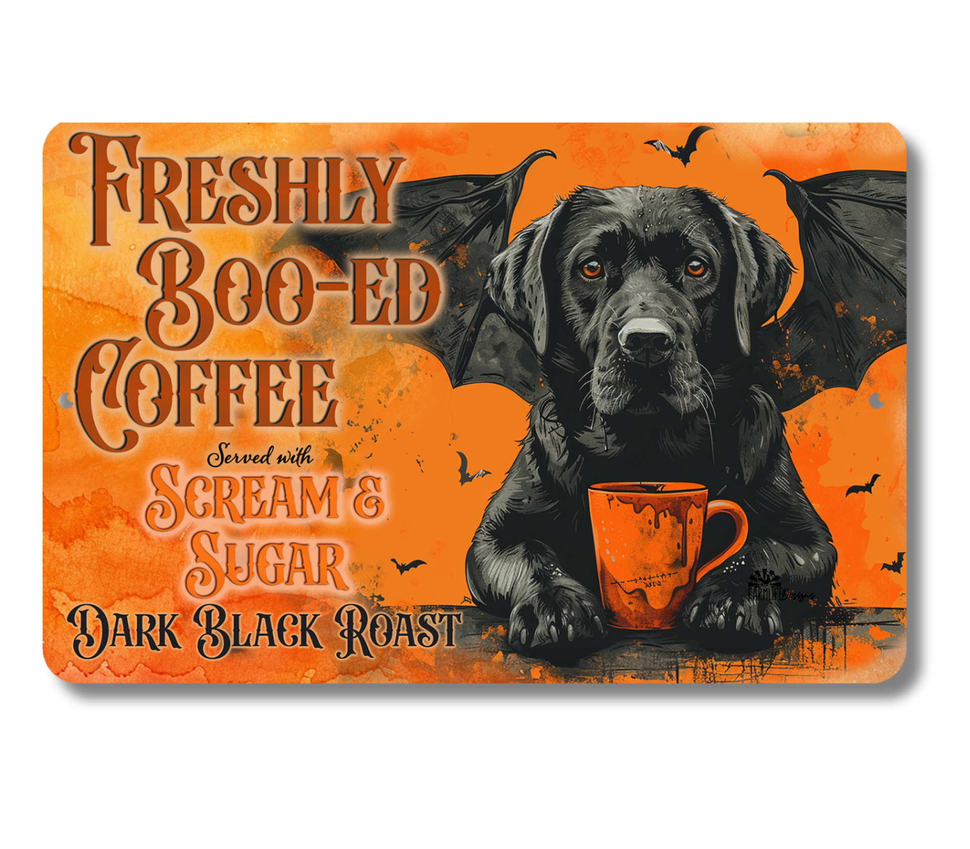 Black Lab Halloween Coffee Bar Funny Metal Tin Sign Fresh Boo-ed Coffee Labrador