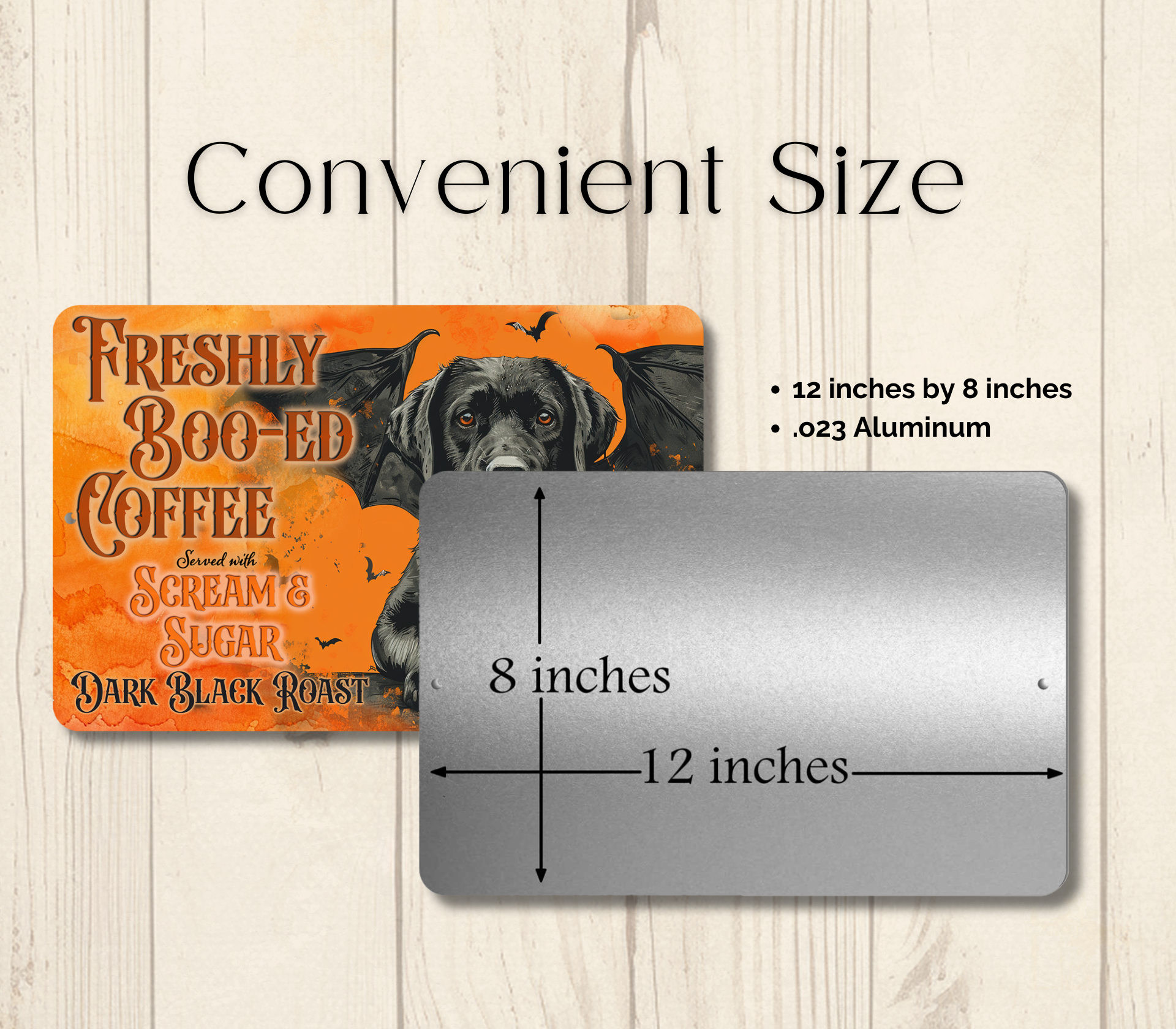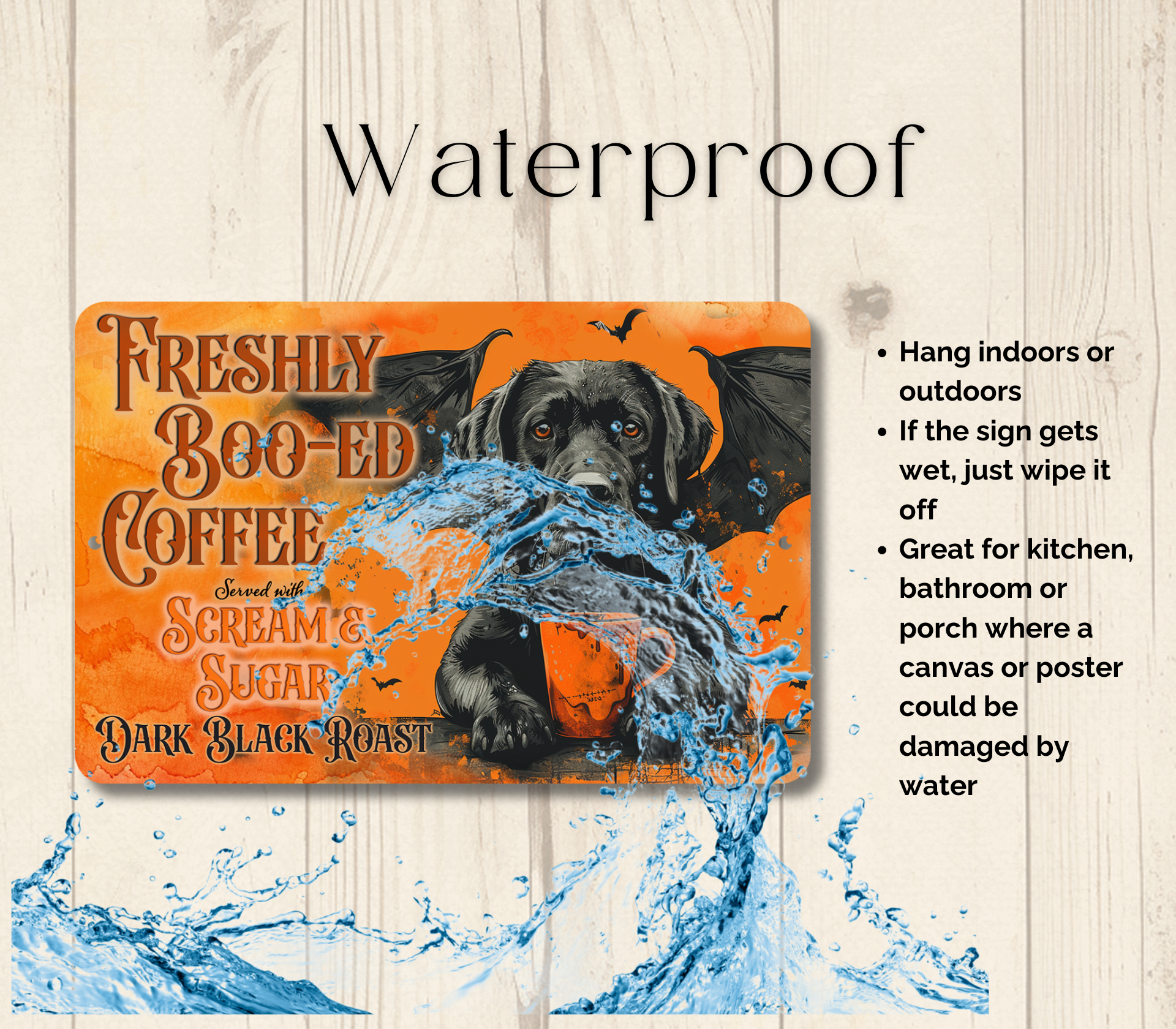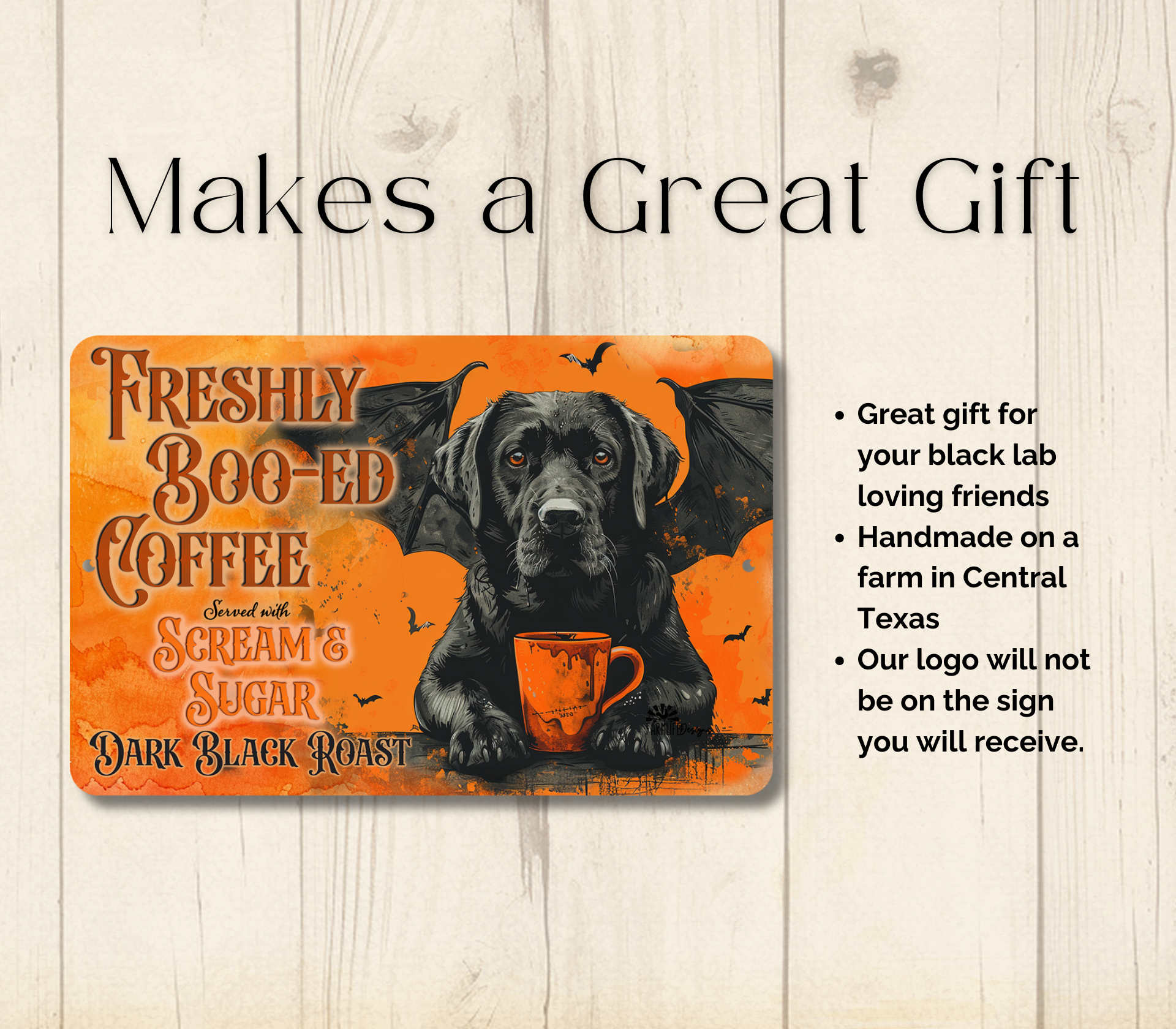 Black Lab Halloween Coffee Bar Funny Metal Tin Sign Fresh Boo-ed Coffee Labrador