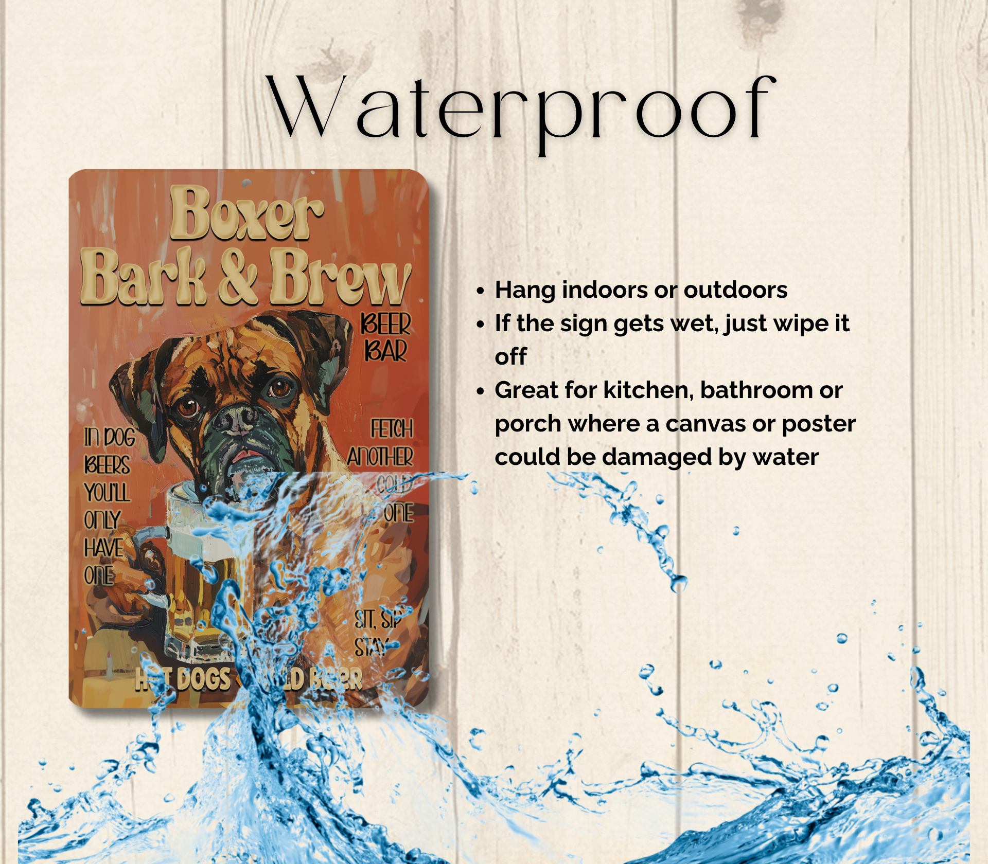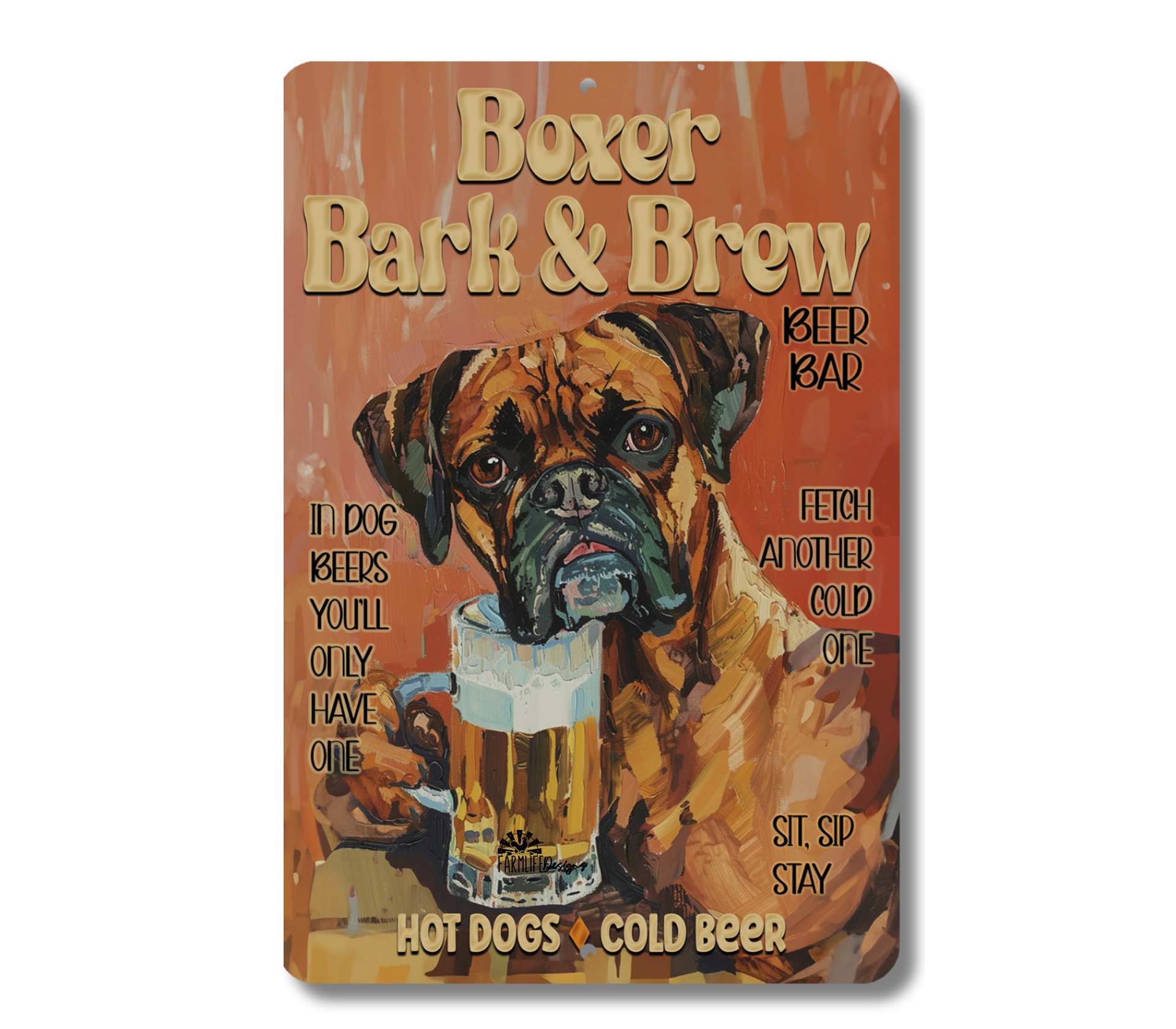 Boxer Beer Bar Sign, Bark and Brew pub metal tin dog wall art