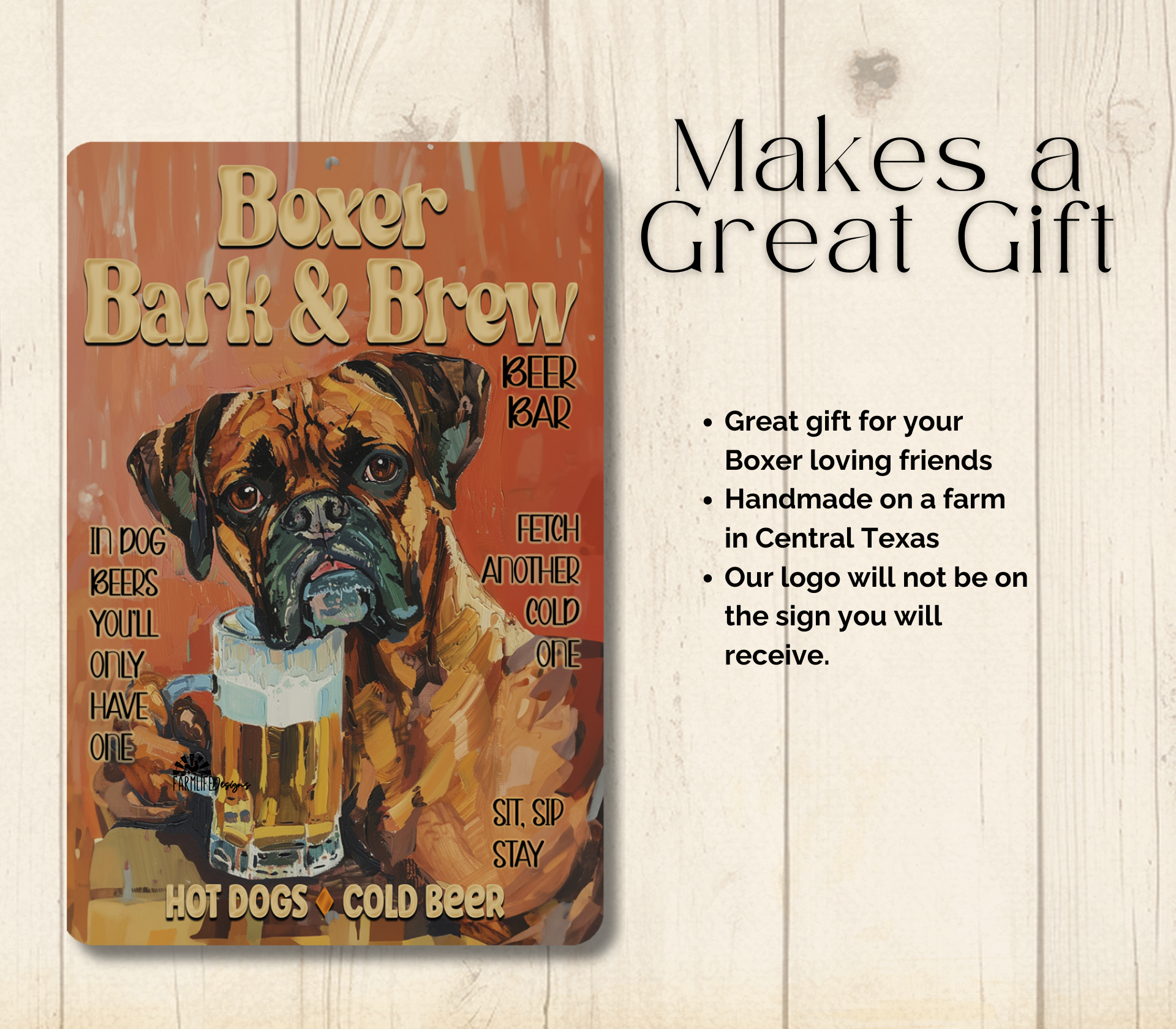 Boxer Bark and Brew, a unique colorful handmade addition to your home. This sign would look great on your porch, in your home bar or man cave, in your kitchen or den... or just about anywhere.