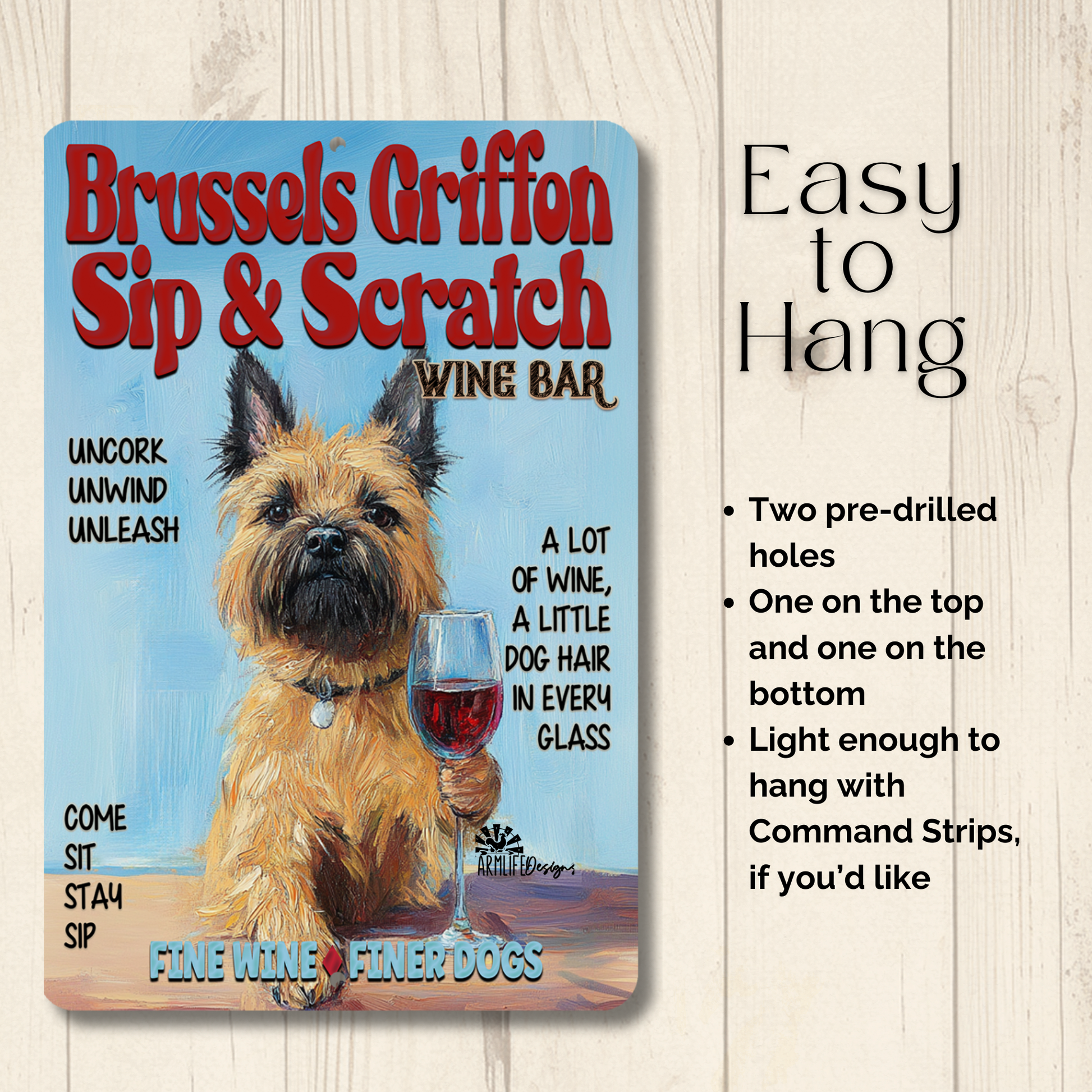 Brussels Griffon Sip & Scratch Wine sign, a unique handmade addition to your home. This sign would look great on in your bar, den, man cave, or wherever you entertain.