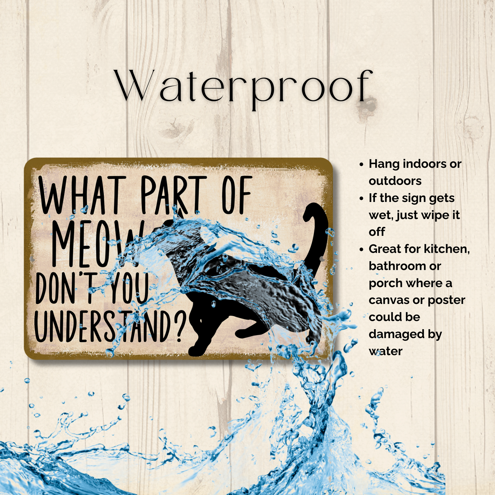 What part of Meow don't you understand? This sign would look great next to your coffee pot, on your porch, in your garden, in your kitchen or den... or just about anywhere.
