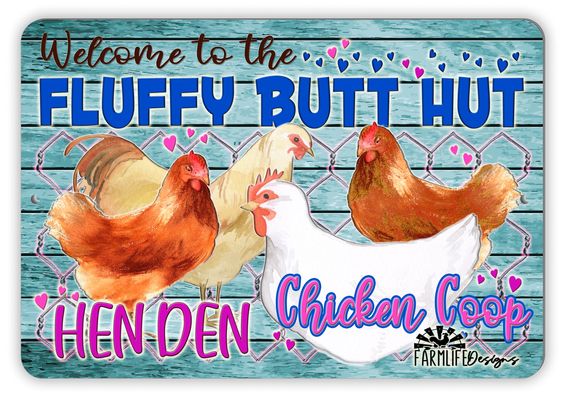 Chicken Coop Sign - Fluffy Butt Hut metal indoor outdoor aluminum chickens hen