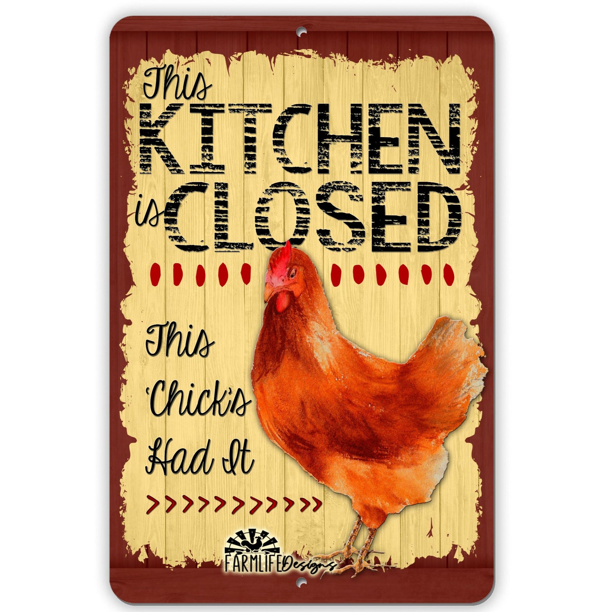 Chicken Kitchen Closed Sign | in brown | chickens decor aluminum 8"x12" hen chick