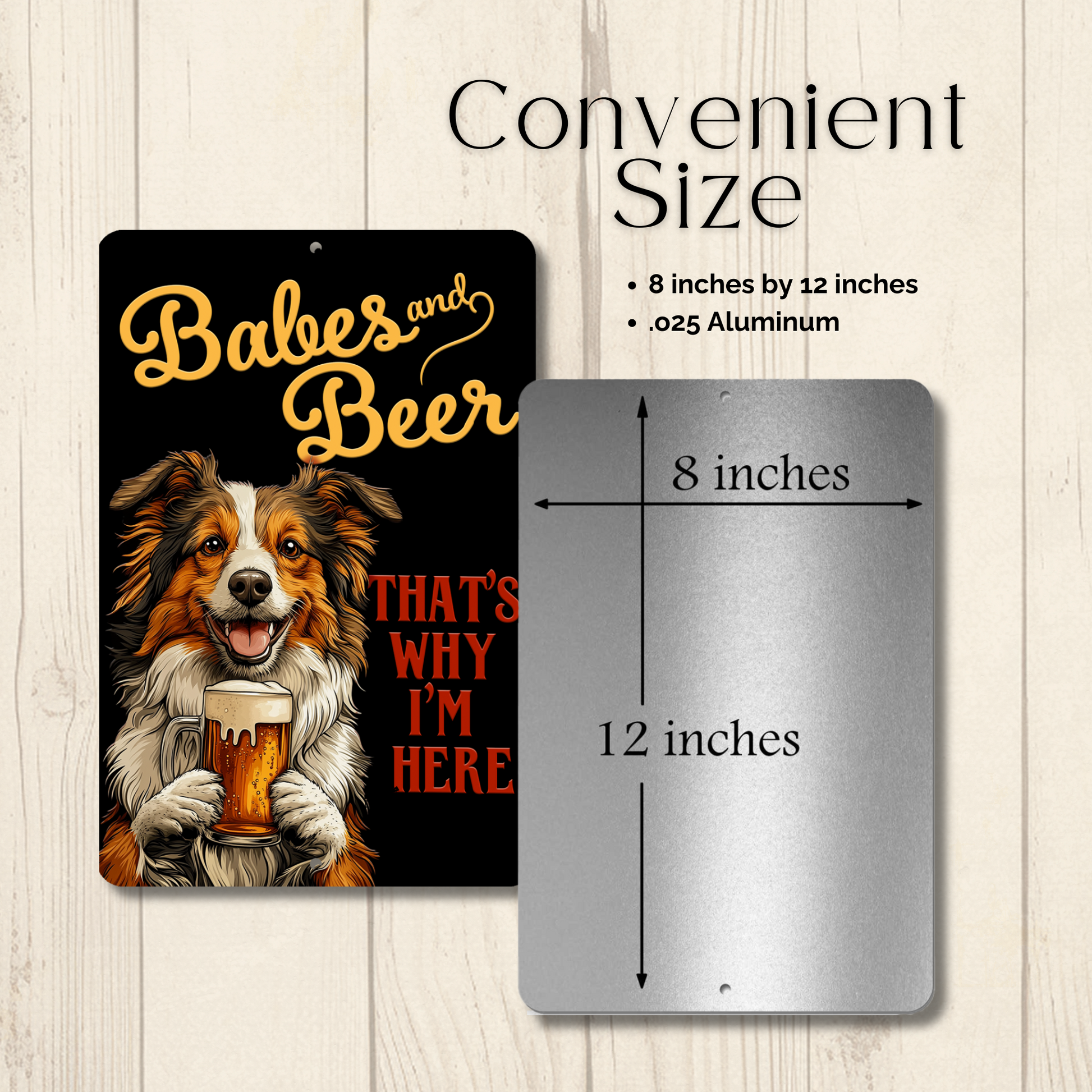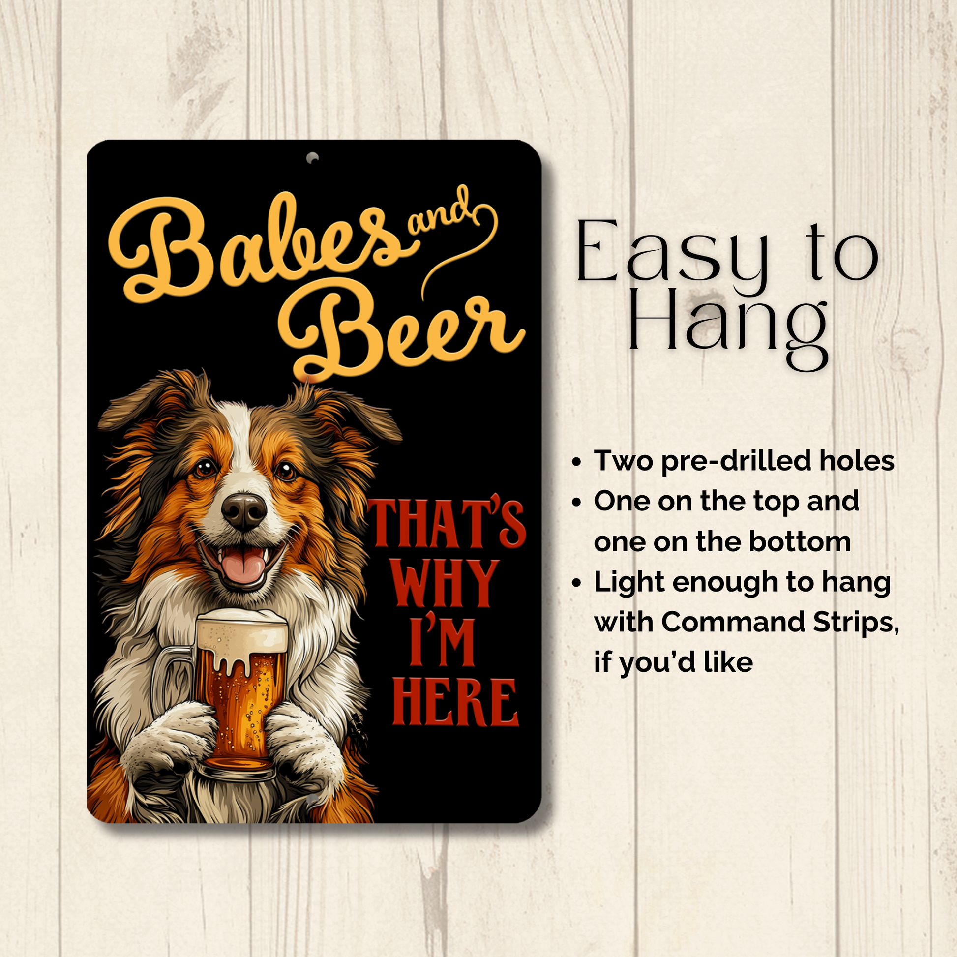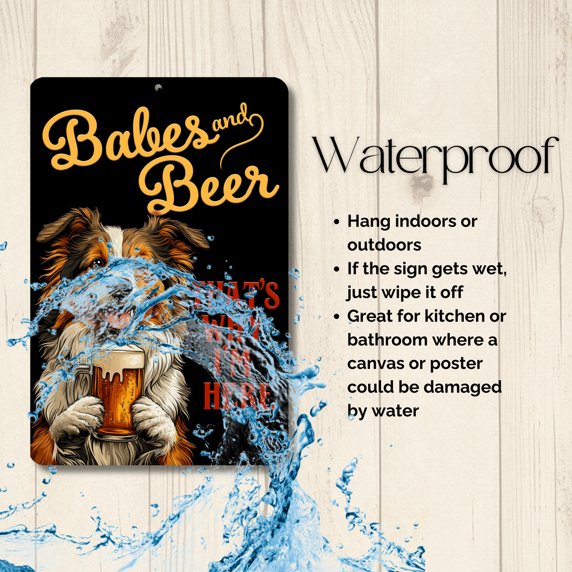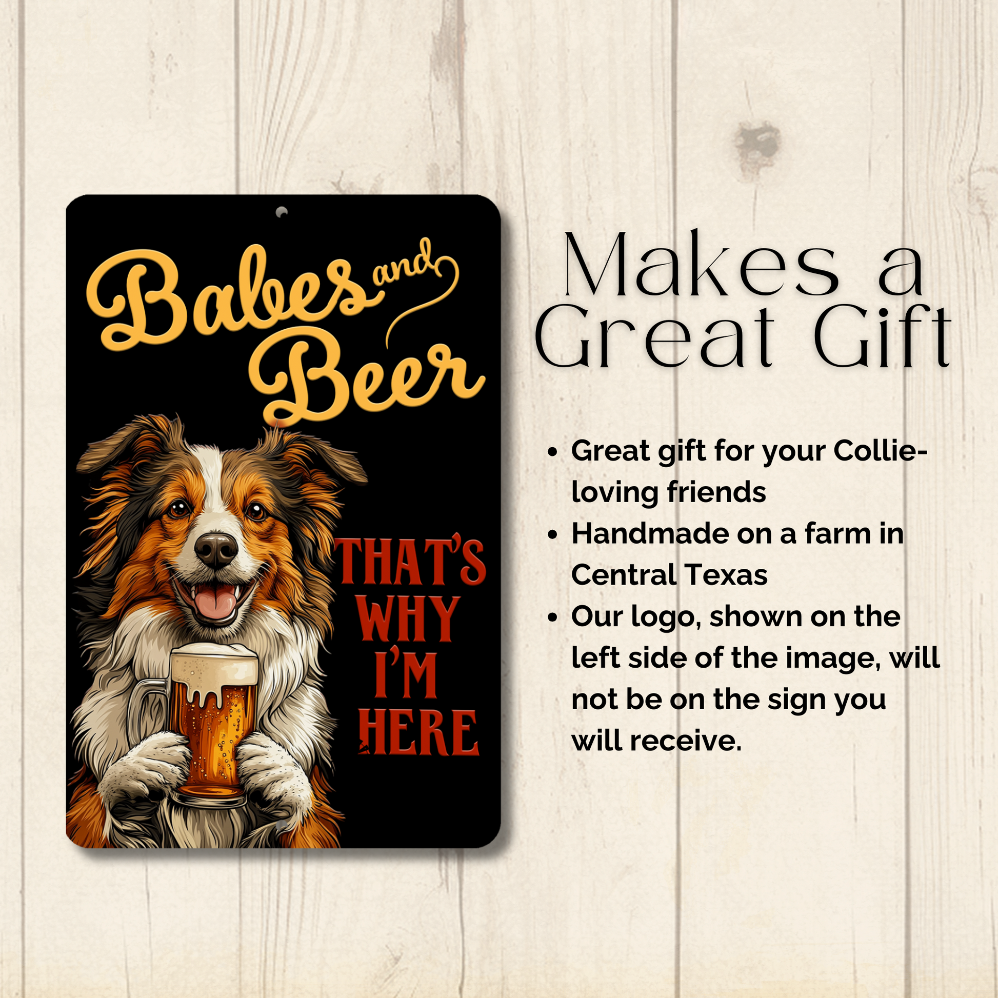 Collie Babes and Beer. Funny sign for your bar, man cave, patio, garage, whereever you drink beer! Great gift for the beer lover that loves dogs! Babes and Beer signs available for all breeds.