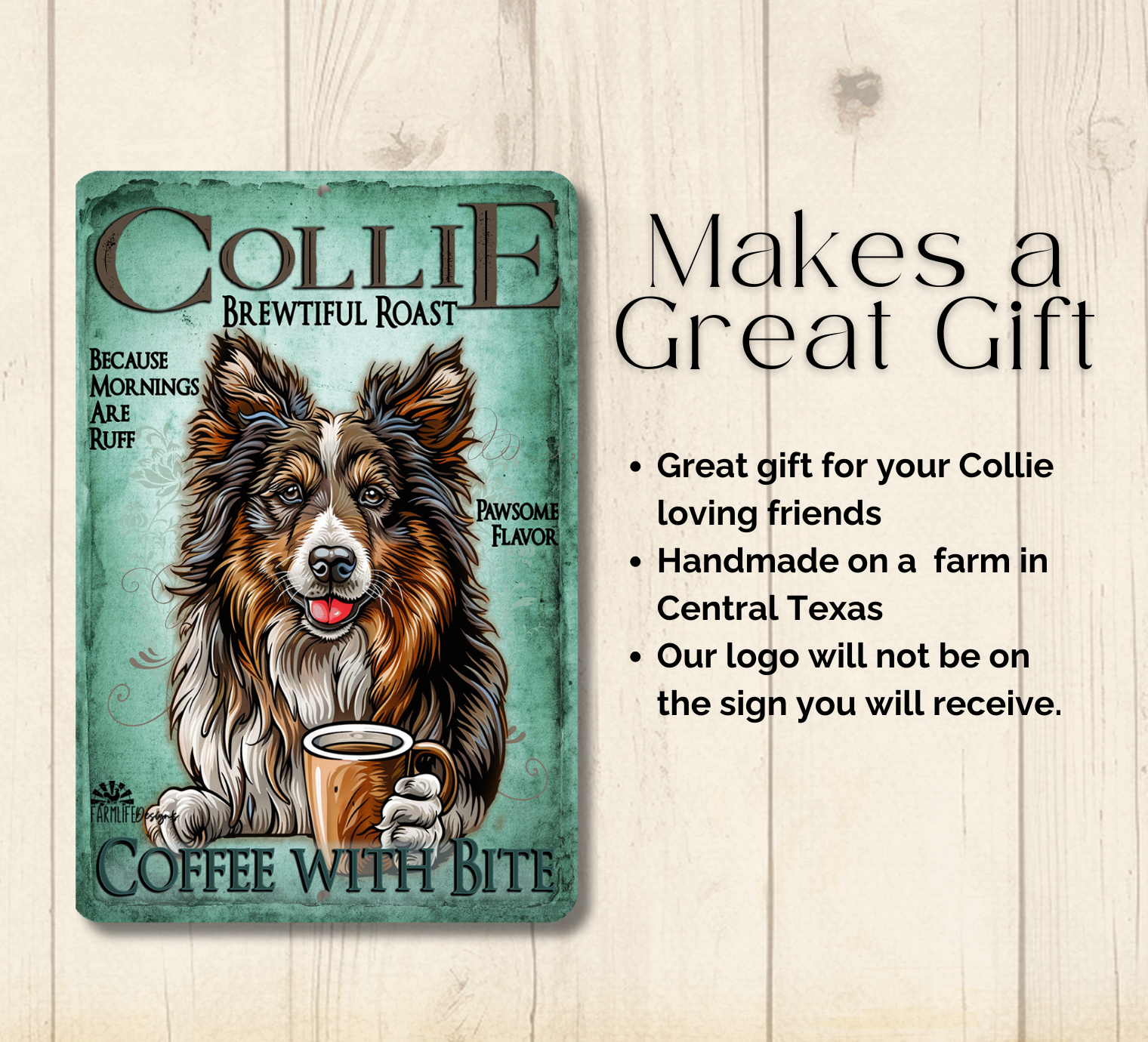 Collie Coffee sign, a unique handmade addition to your home. This sign would look great on your coffee bar or next to the coffee pot in the kitchen.