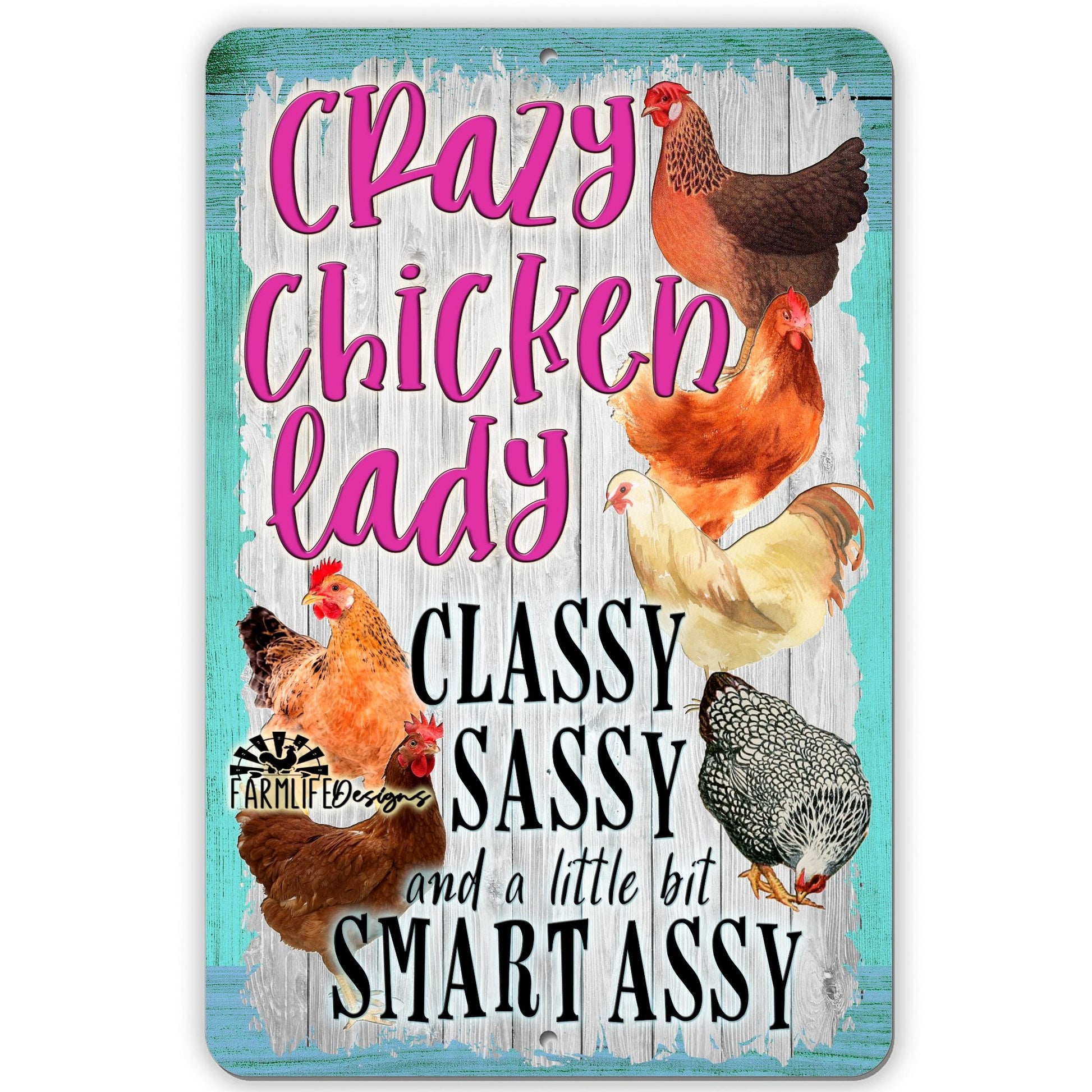 Crazy Chicken Lady Sign - 8x12 Aluminum - Classy, Sassy, Smart Assy - in Blue