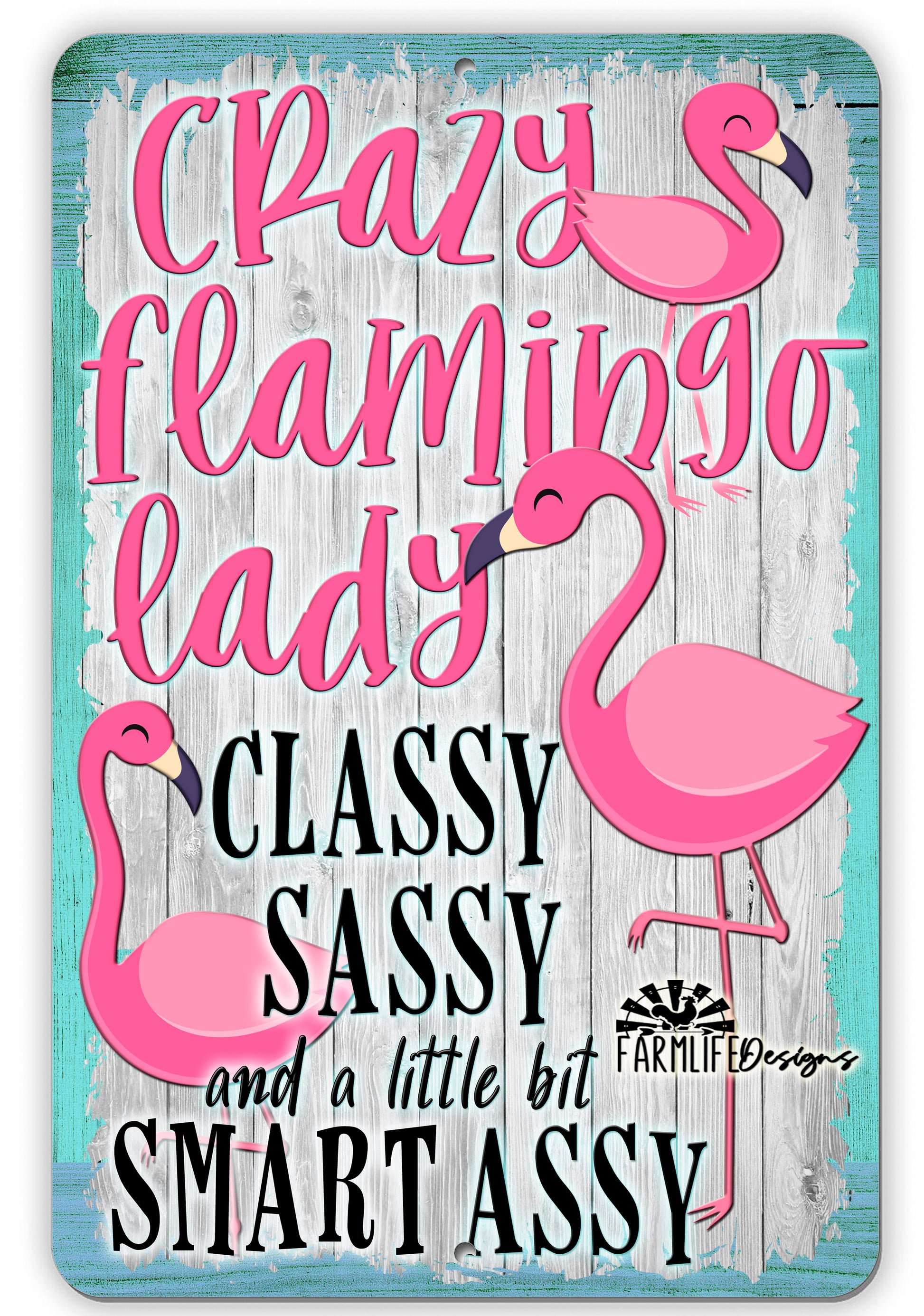 Crazy Flamingo Lady Sign, Classy Sassy and a Little Bit Smart Assy