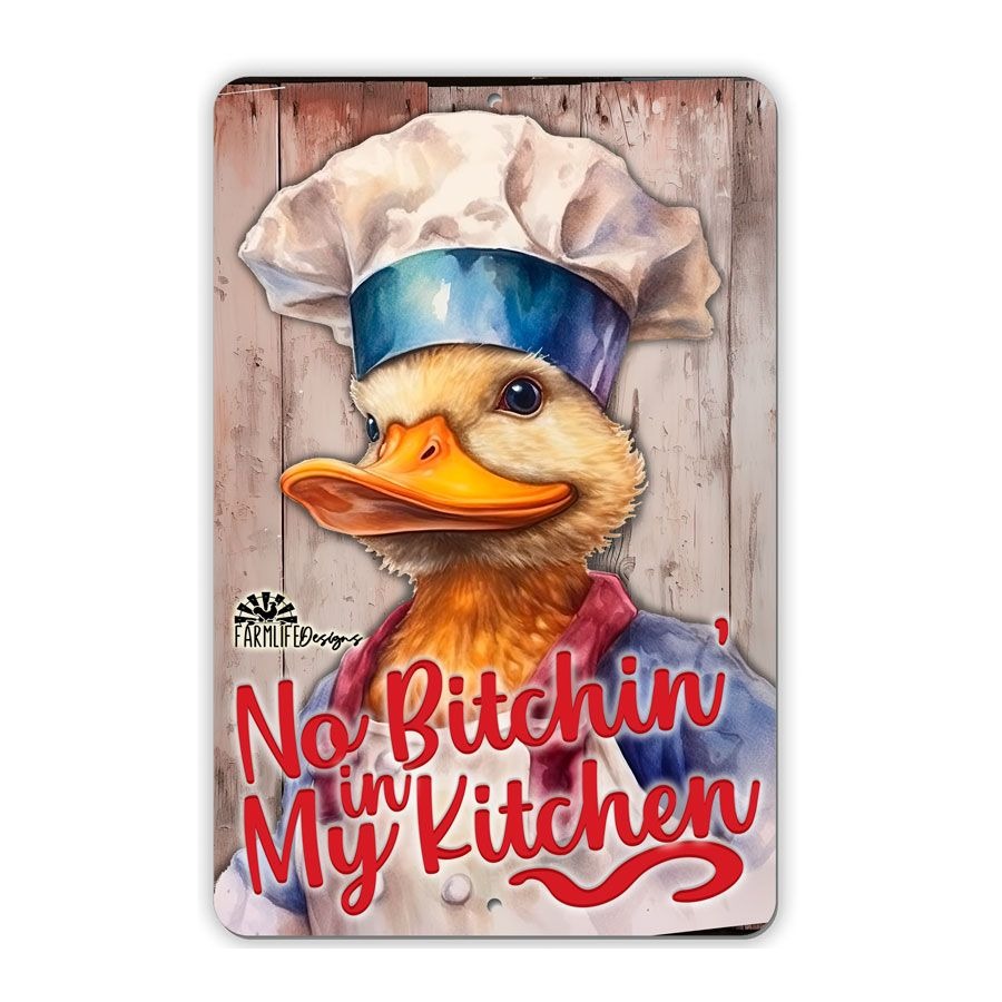 Duck Sign - Duck Chef - No Bitchin in My Kitchen - duck cooking, kitchen sign