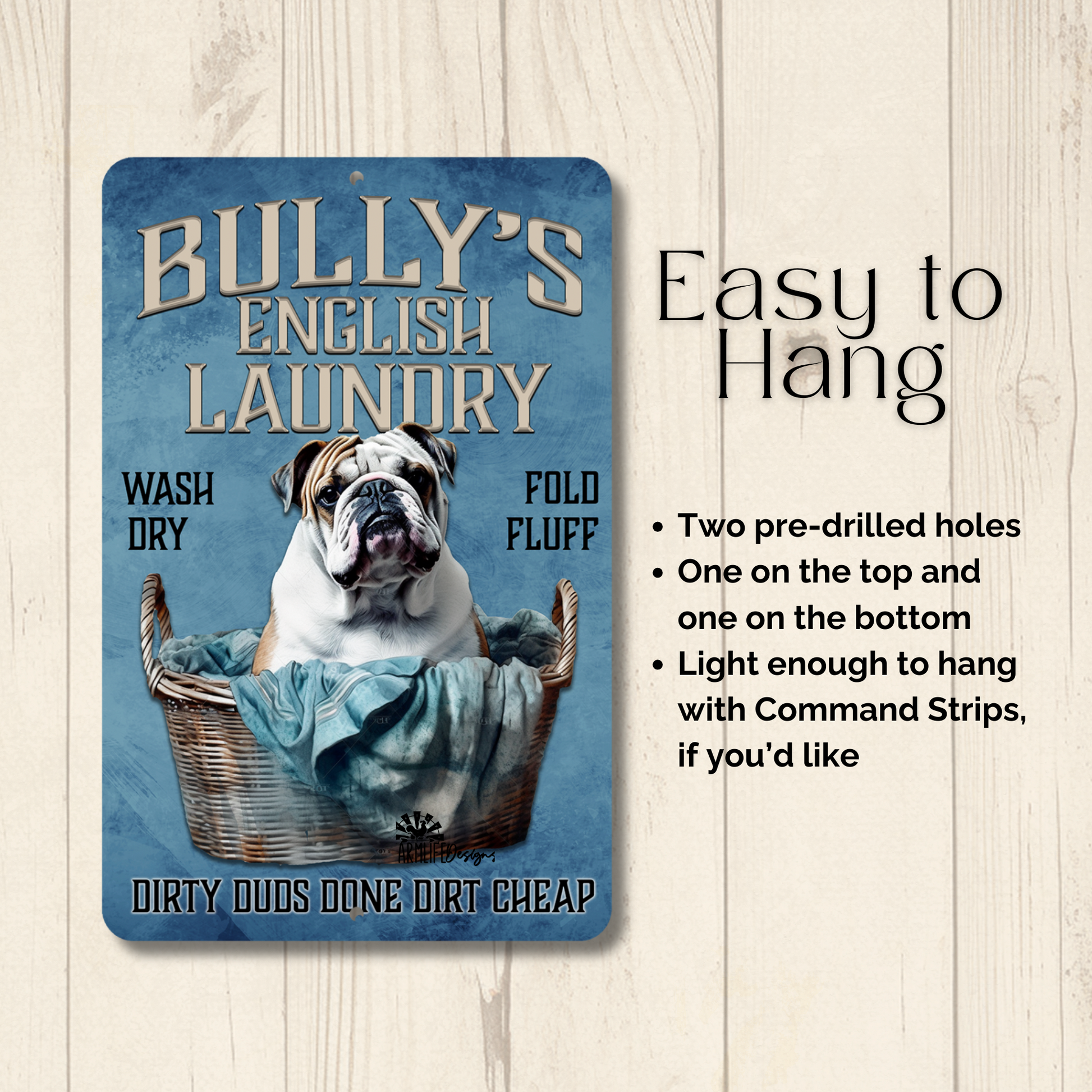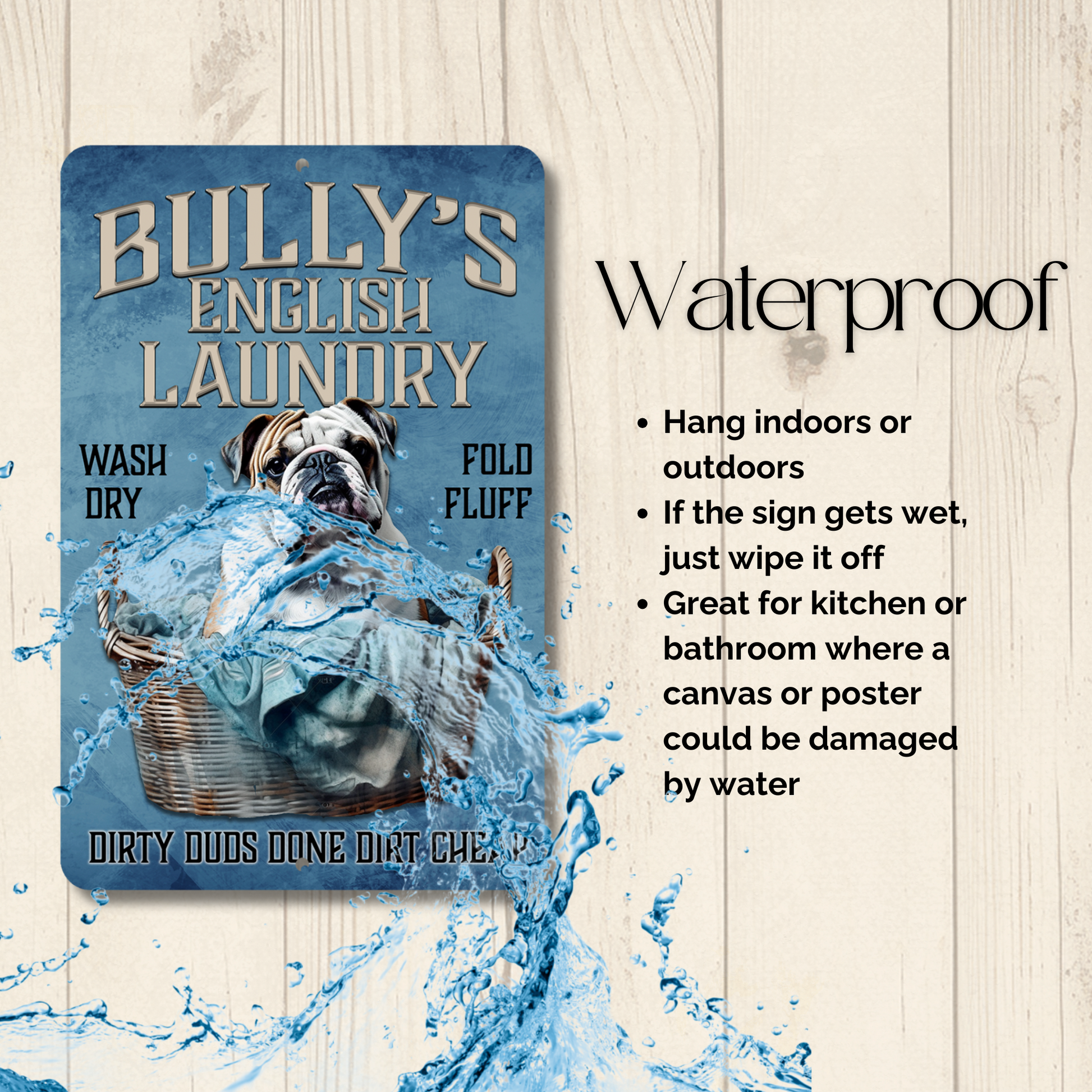 English Bulldog Laundry Room Sign Bully metal tin bull dog decor