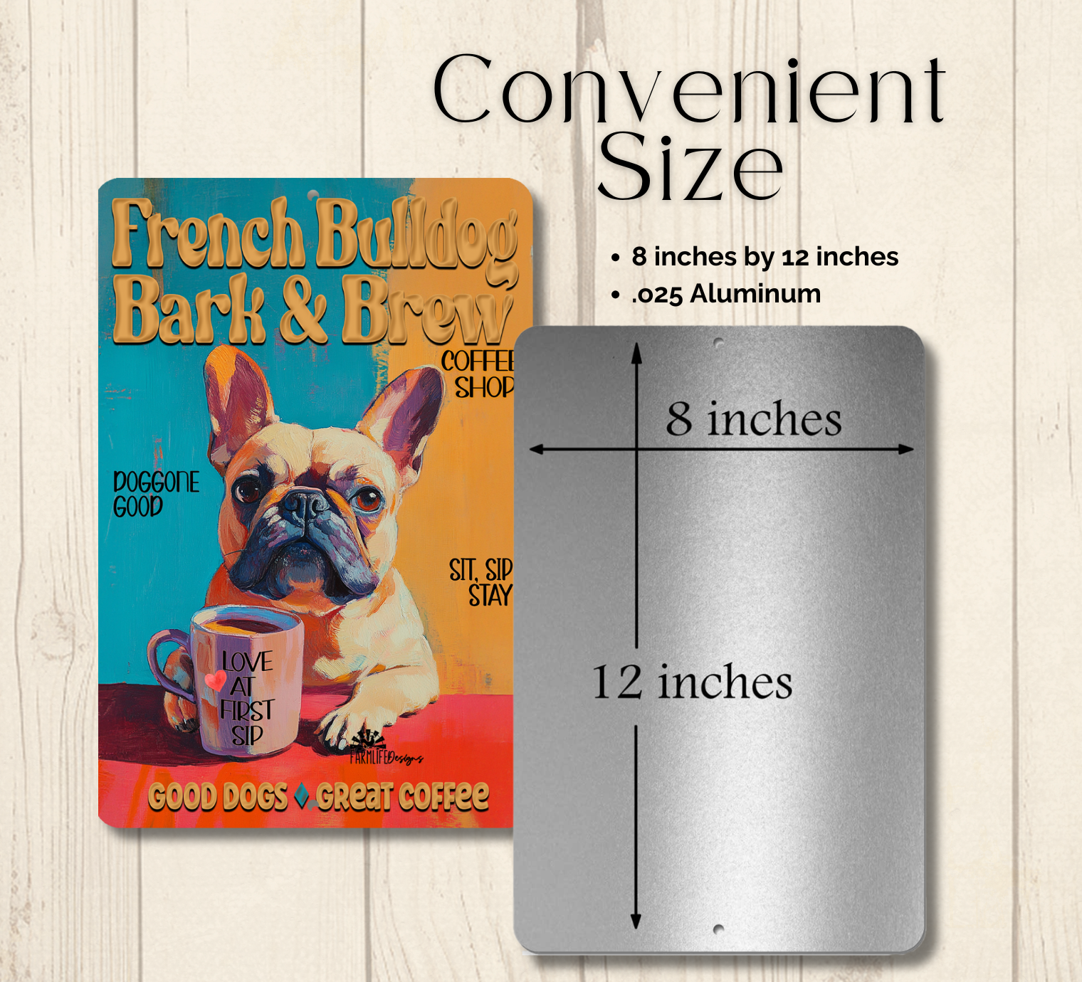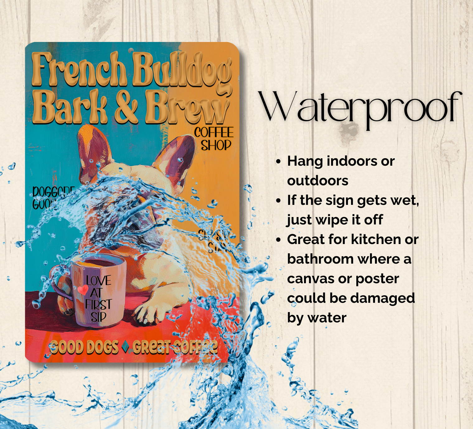 French Bulldog Coffee Bar Sign Bull Dog Bark & Brew Metal Tin