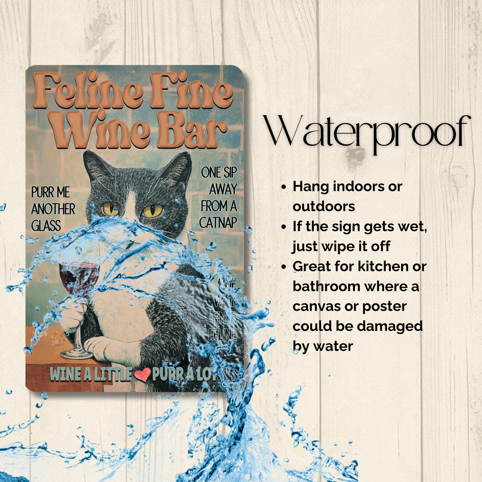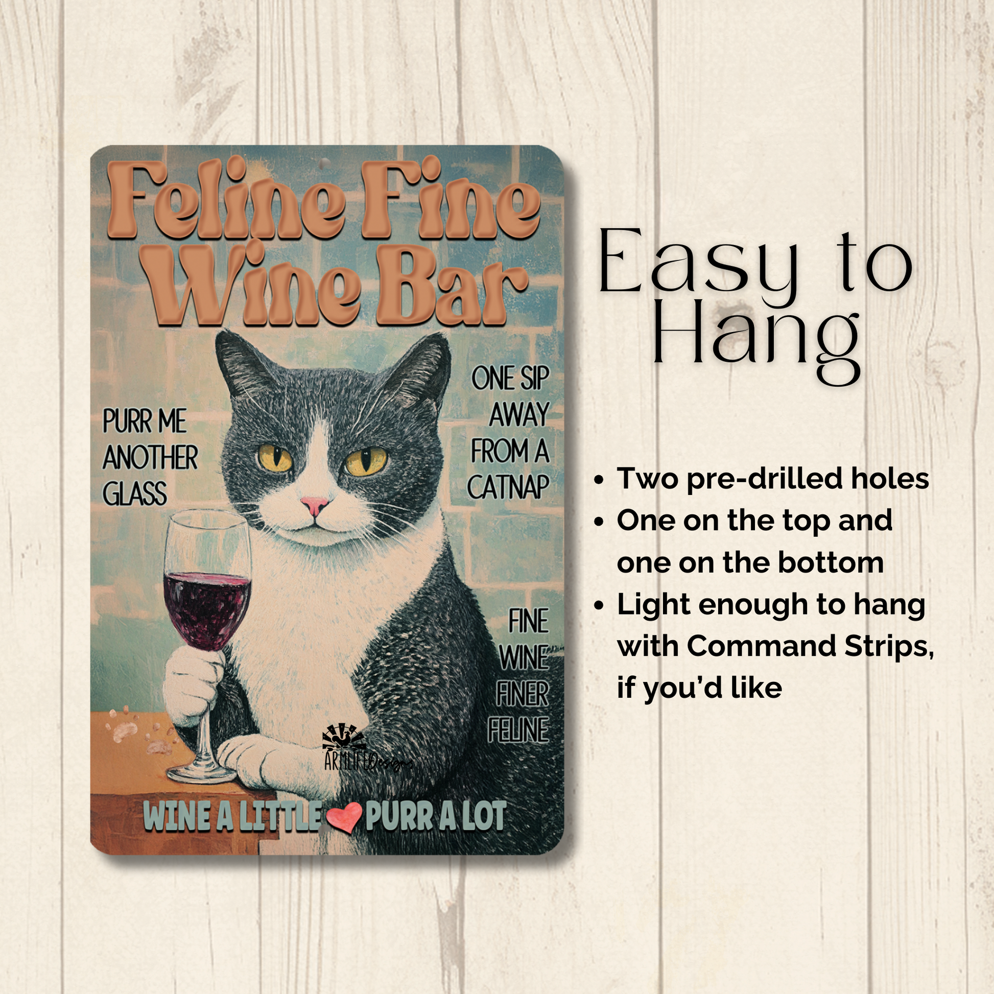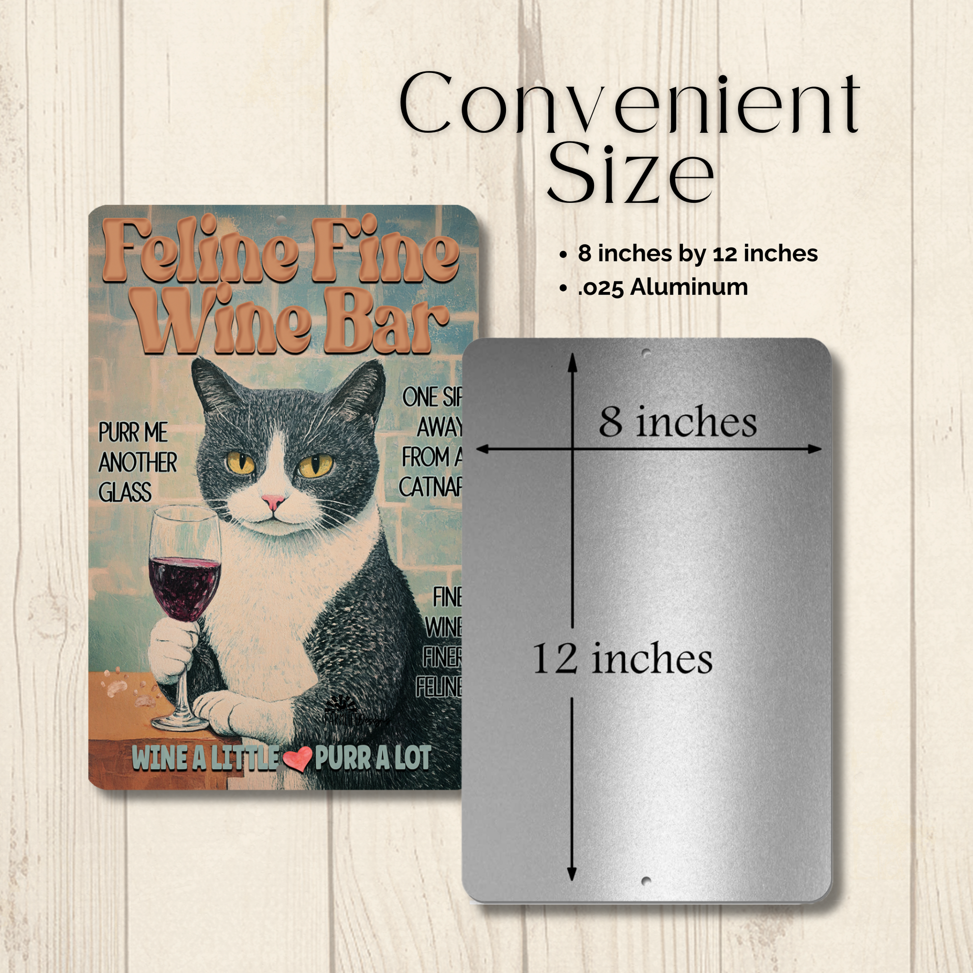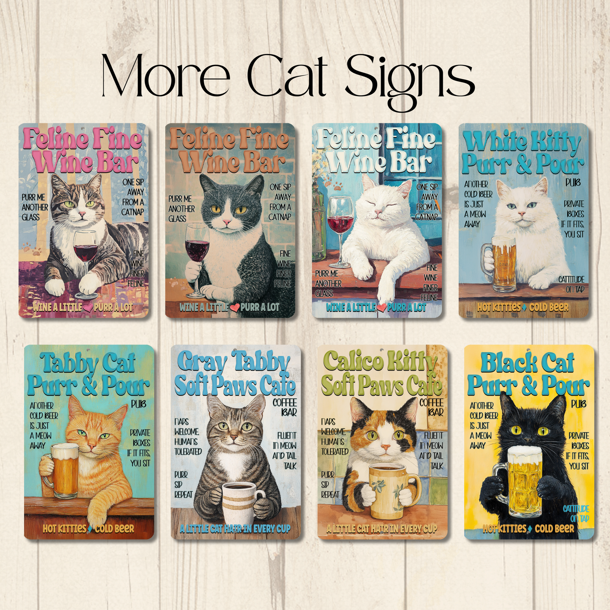 Gray Tabby Cat Feline Fine Wine Bar Sign, Sip & Scratch pub metal tin kitty wall art