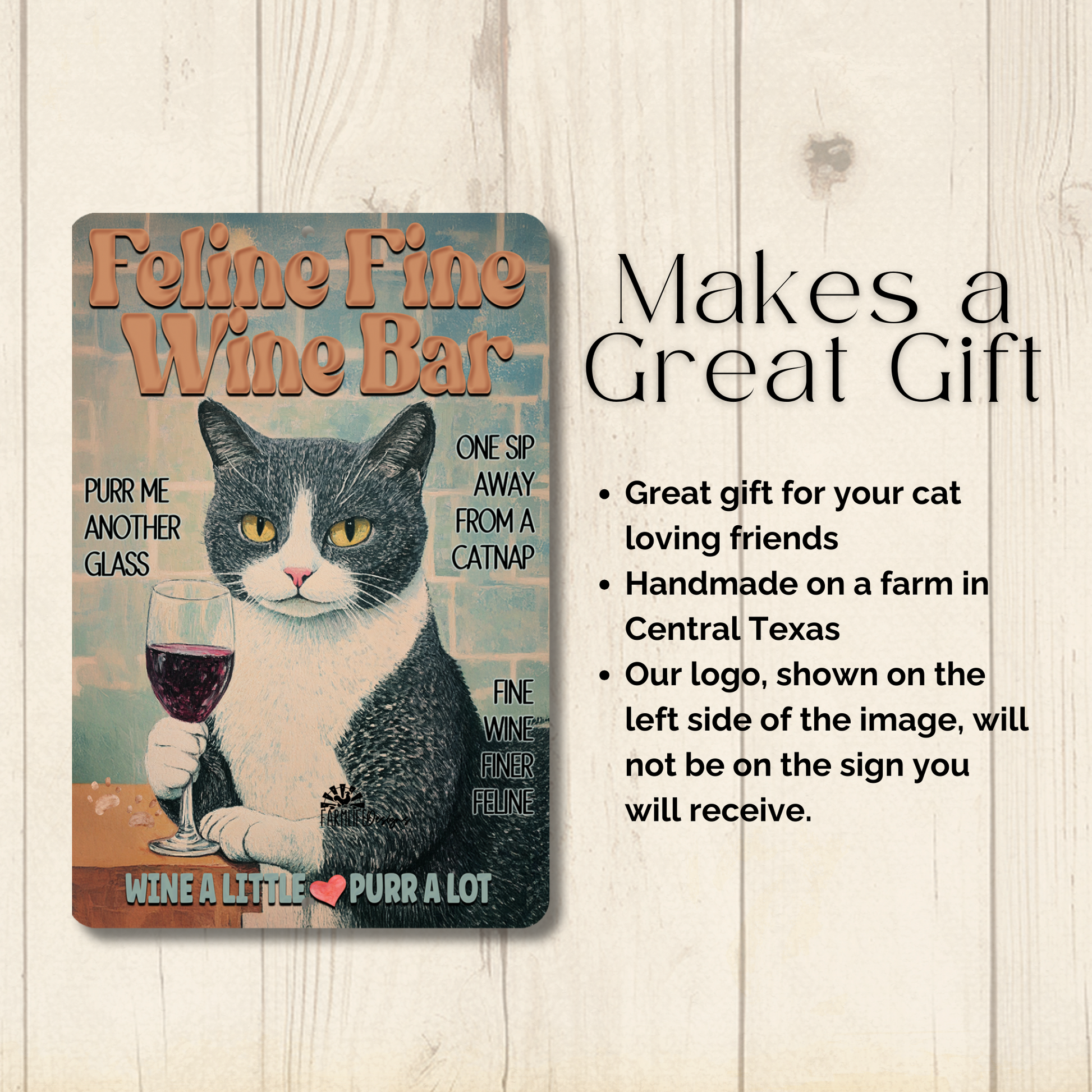 Gray Tabby Cat Feline Fine Wine Bar, a unique colorful handmade addition to your home. This sign would look great on your porch, in your home bar, she shed or man cave, in your kitchen or den... or just about anywhere.