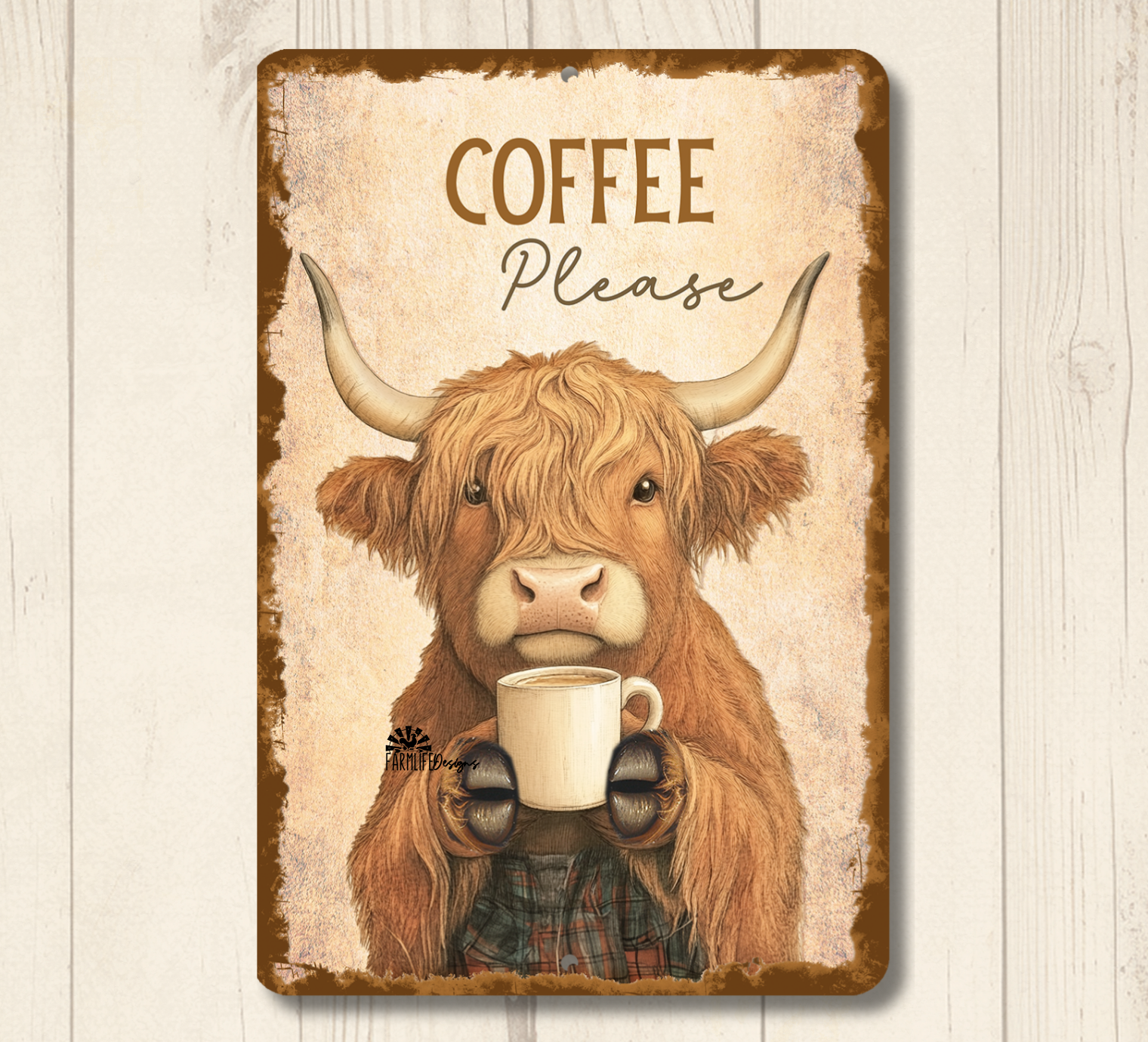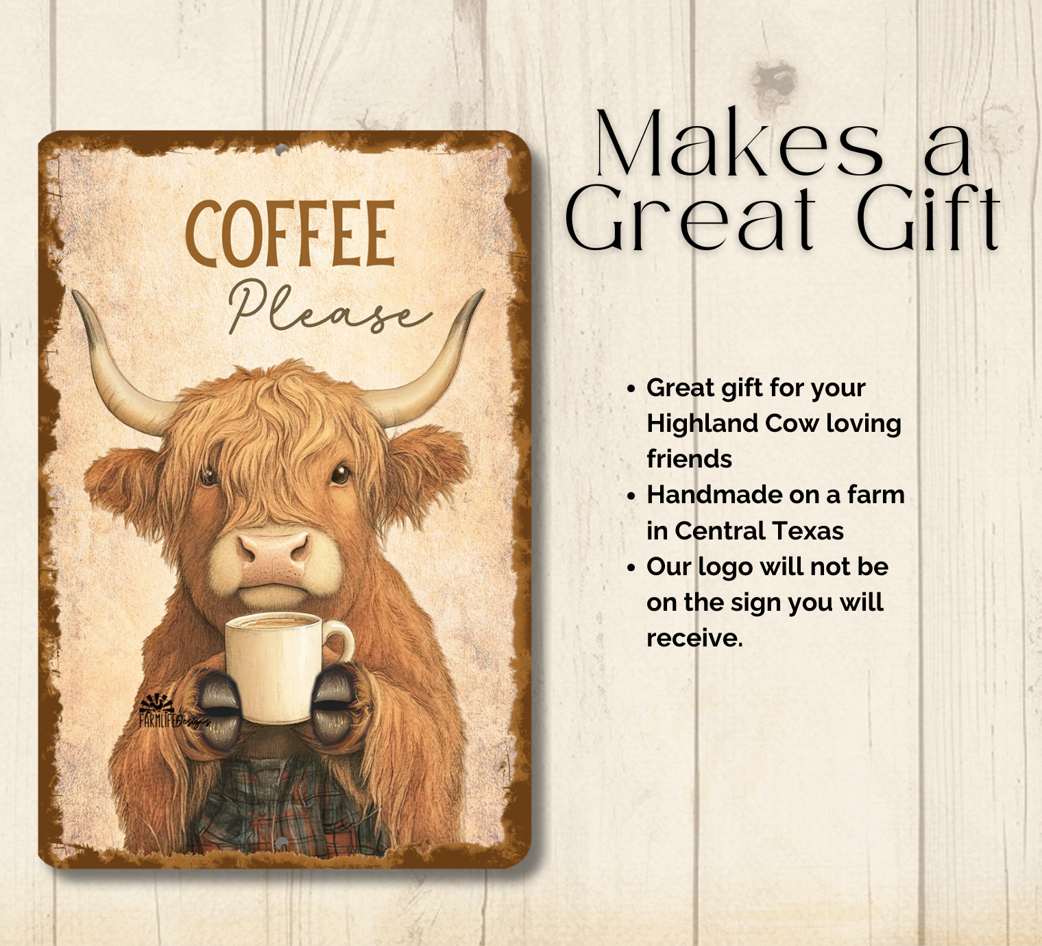 Highland Cow Coffee Bar Sign Coffee Please fluffy cows metal tin 2 sizes