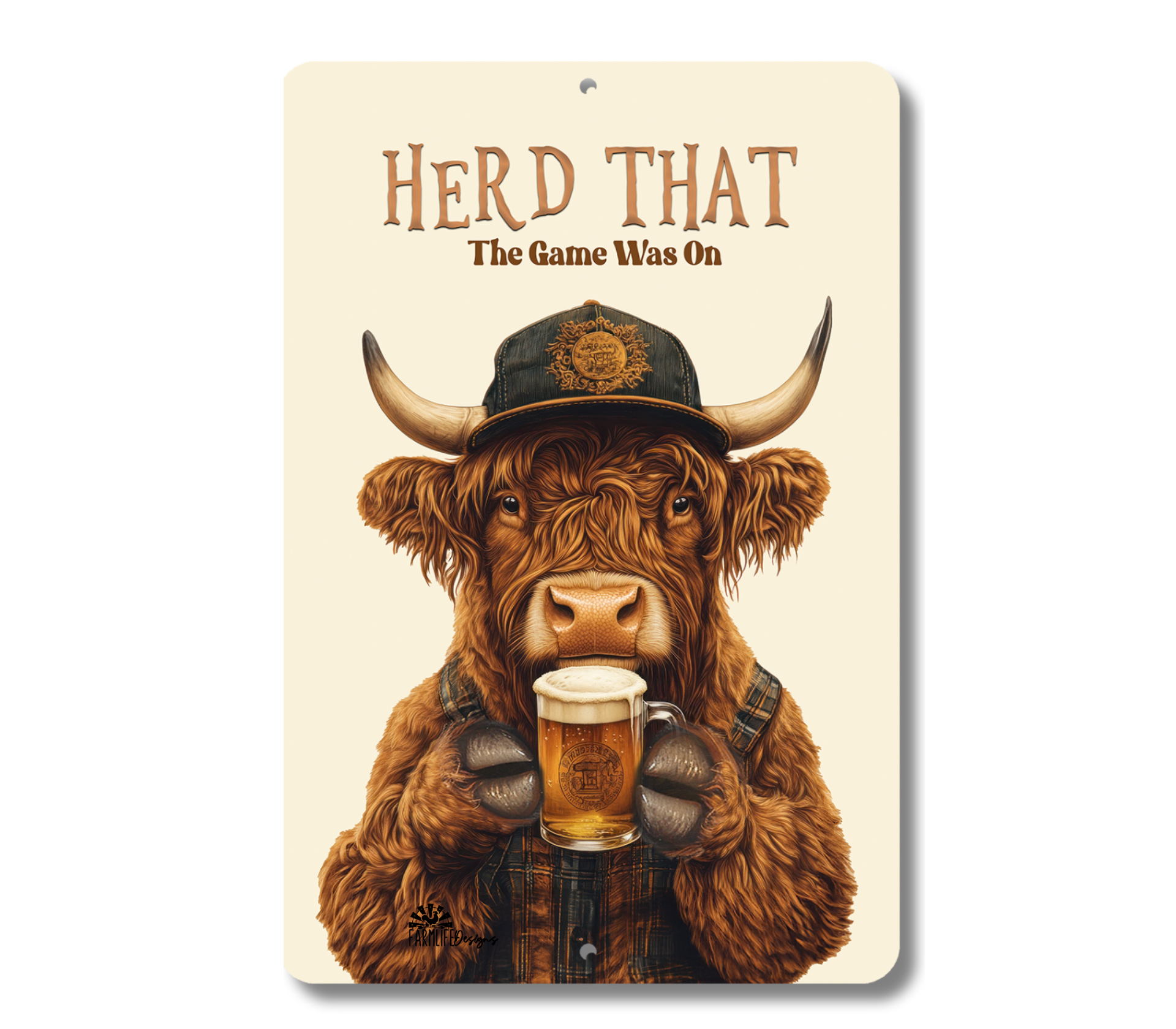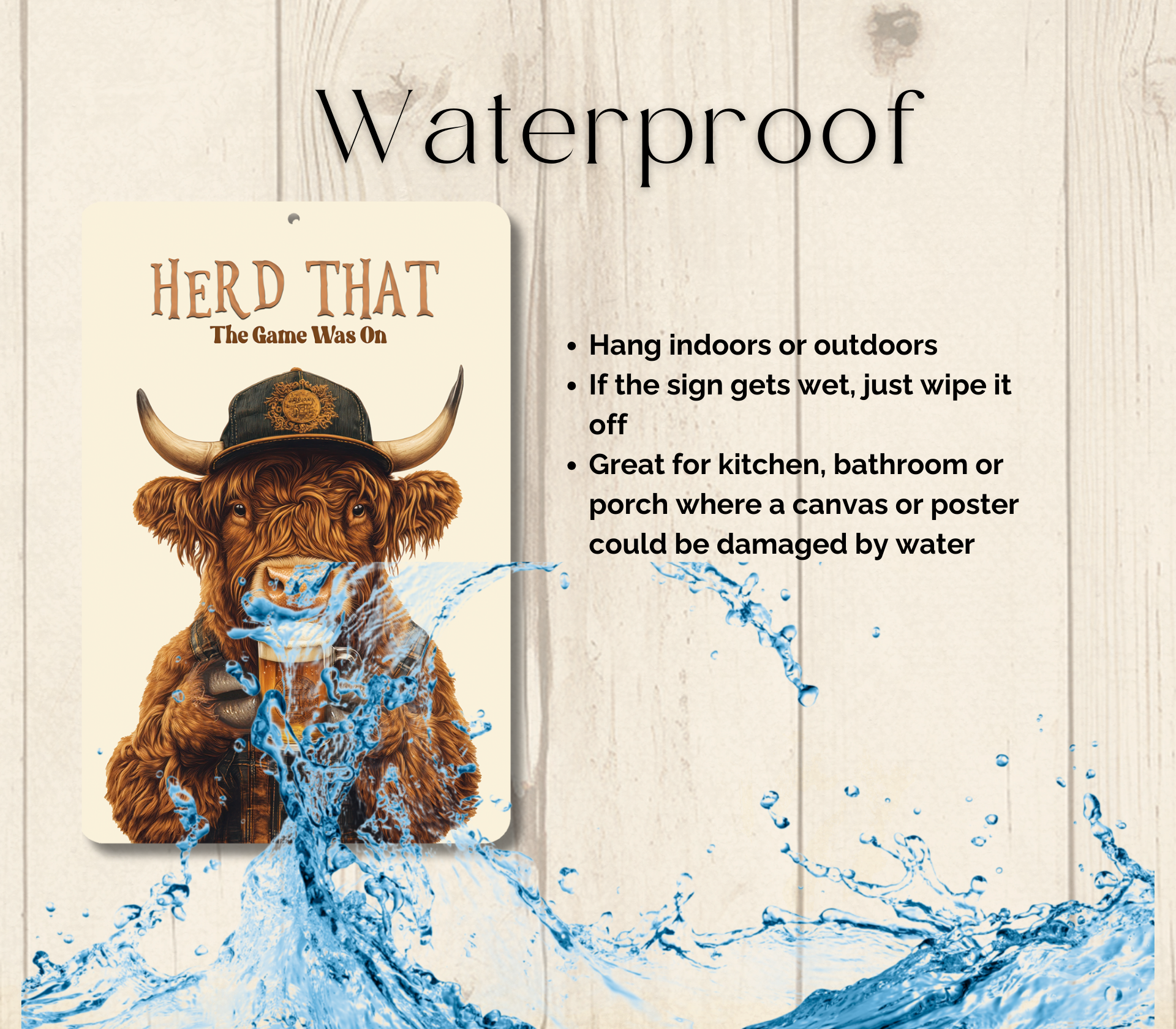 Highland Cow Herd That the Game Was On Sign Funny Fluffy Cow metal tin 2 sizes
