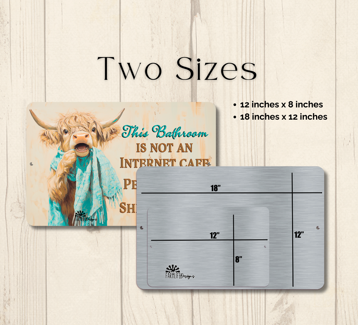 Highland Cow Sign, This Bathroom is Not an Internet Cafe, 2 sizes metal tin bath wall art