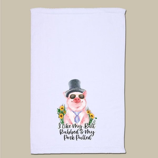 I Like My Butt Rubbed Pork Pulled Dish Towel, tea, pig, barbecue, waffle weave
