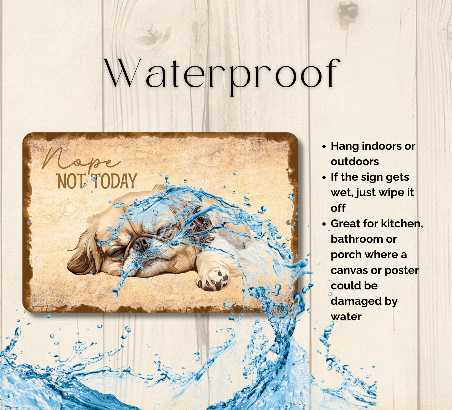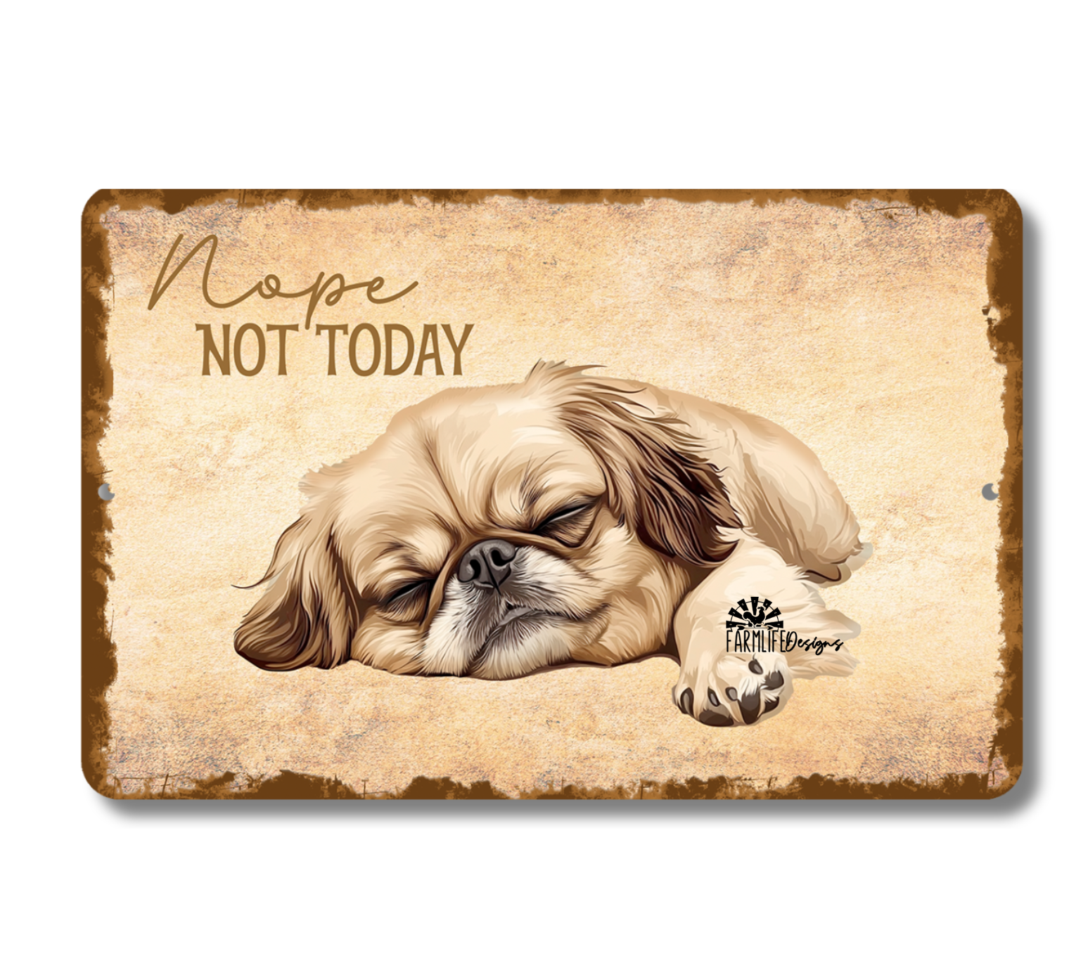 Pekingese Sign Nope Not Today Funny Lazy Dog metal tin indoor outdoor