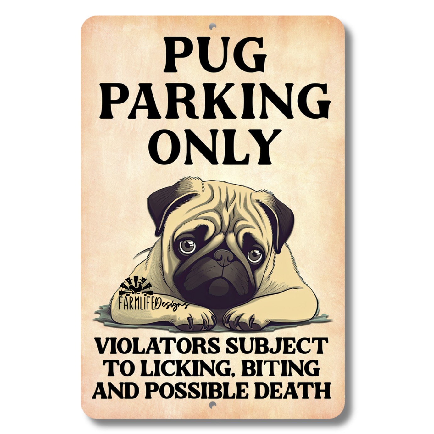 Pug Parking Sign Funny Outdoor Dog metal sign
