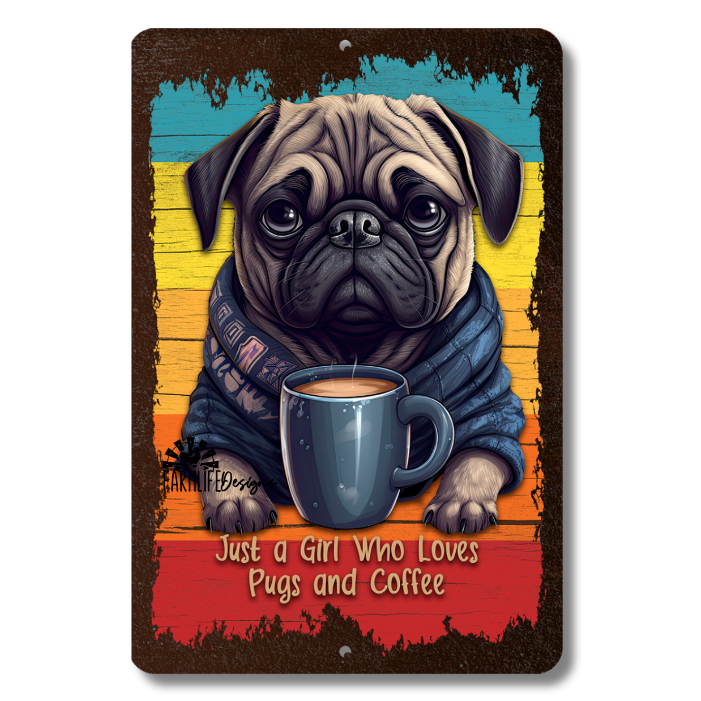 Pug Sign, Just a Girl Who Loves Pugs and Coffee