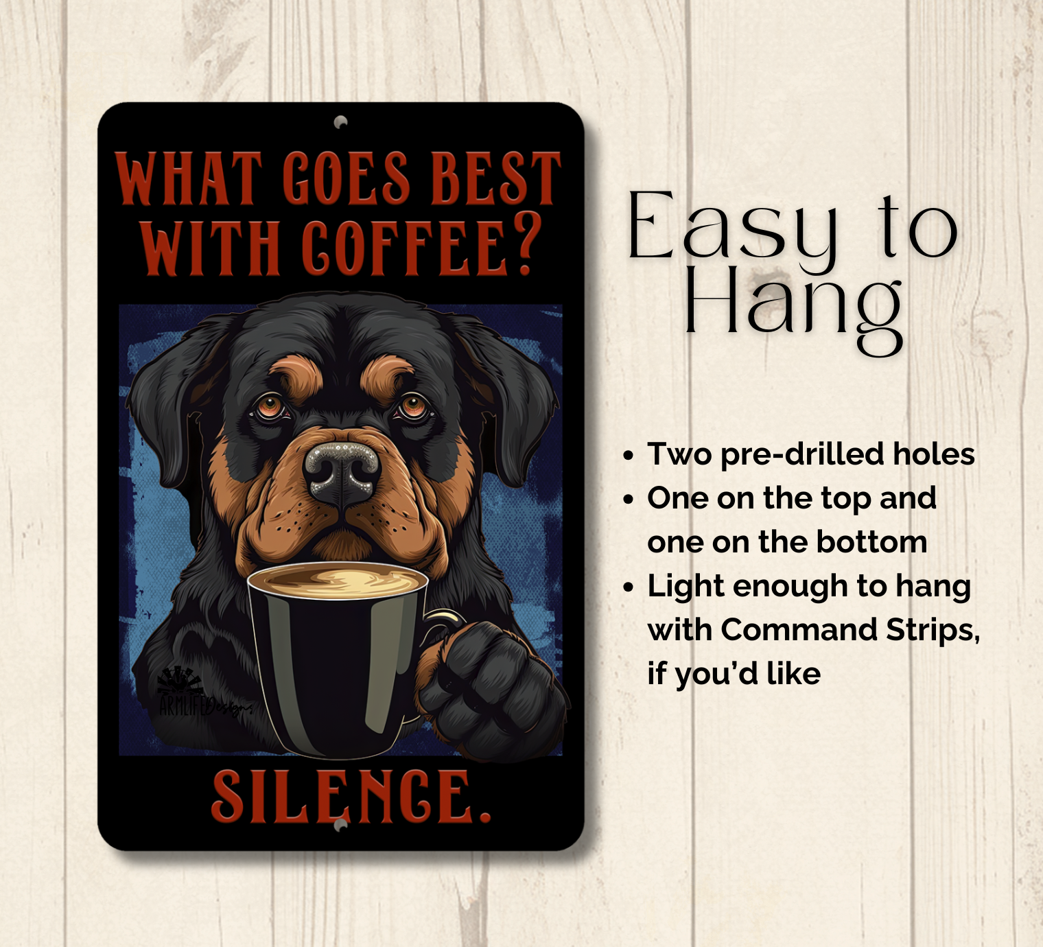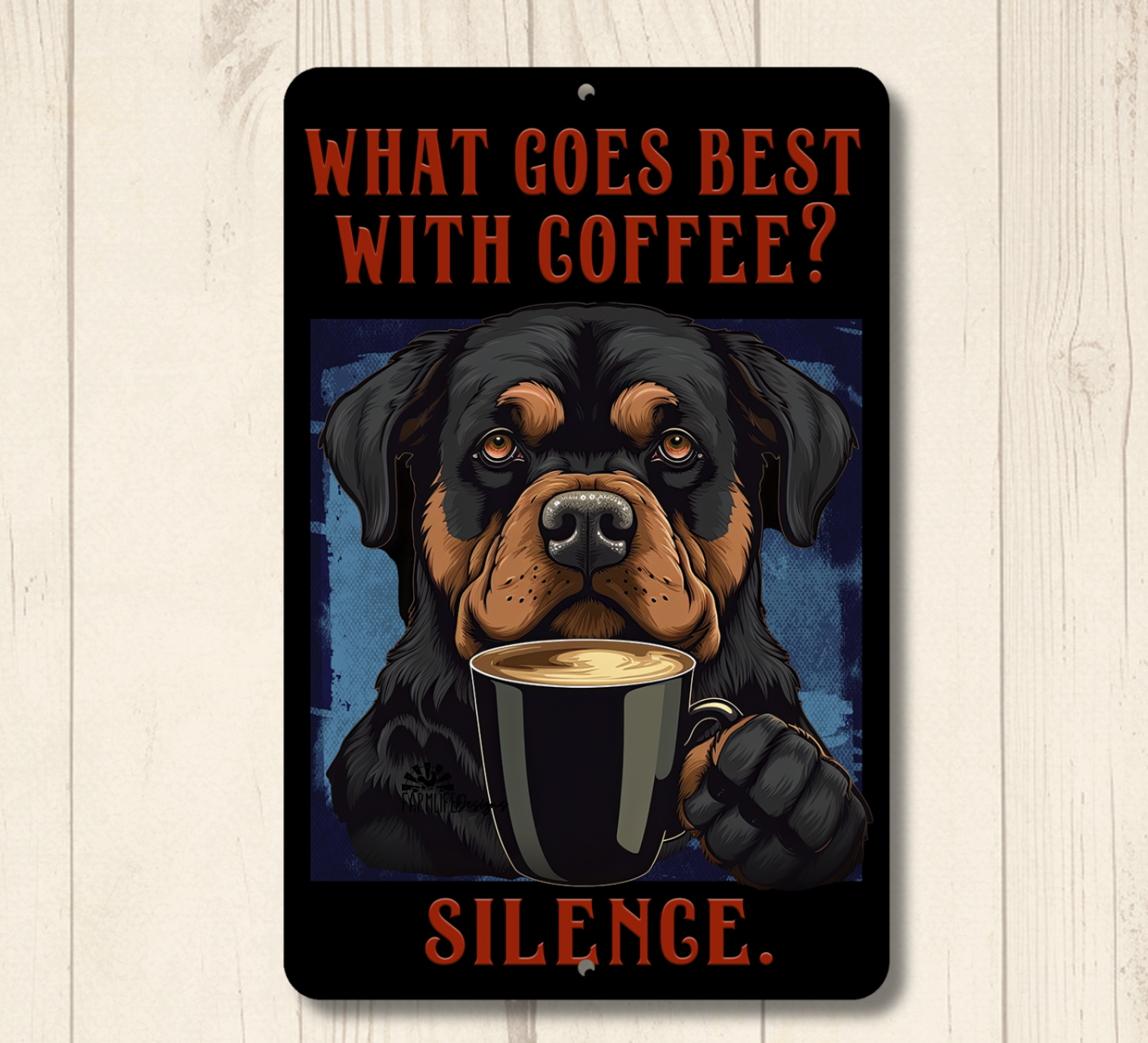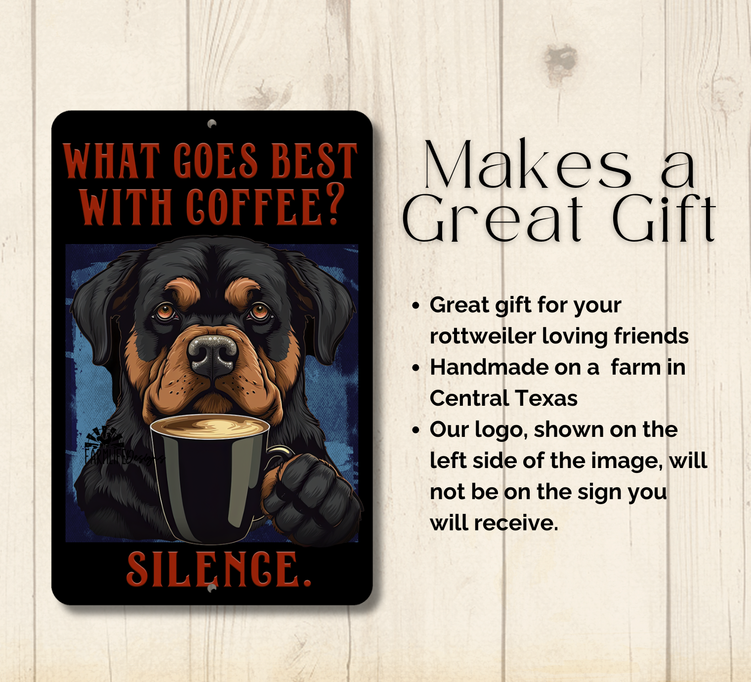 Rottweiler Coffee sign, a unique handmade addition to your home. This sign would look great on your coffee bar or next to the coffee pot in the kitchen.