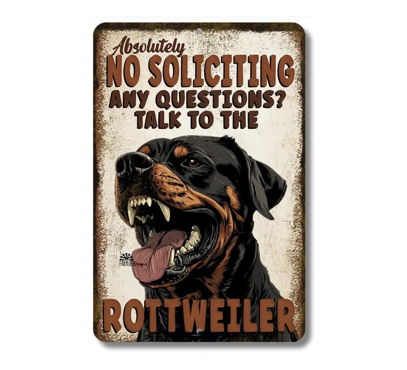 Rottweiler No Soliciting Sign, angry dog, yard warning sign outdoor