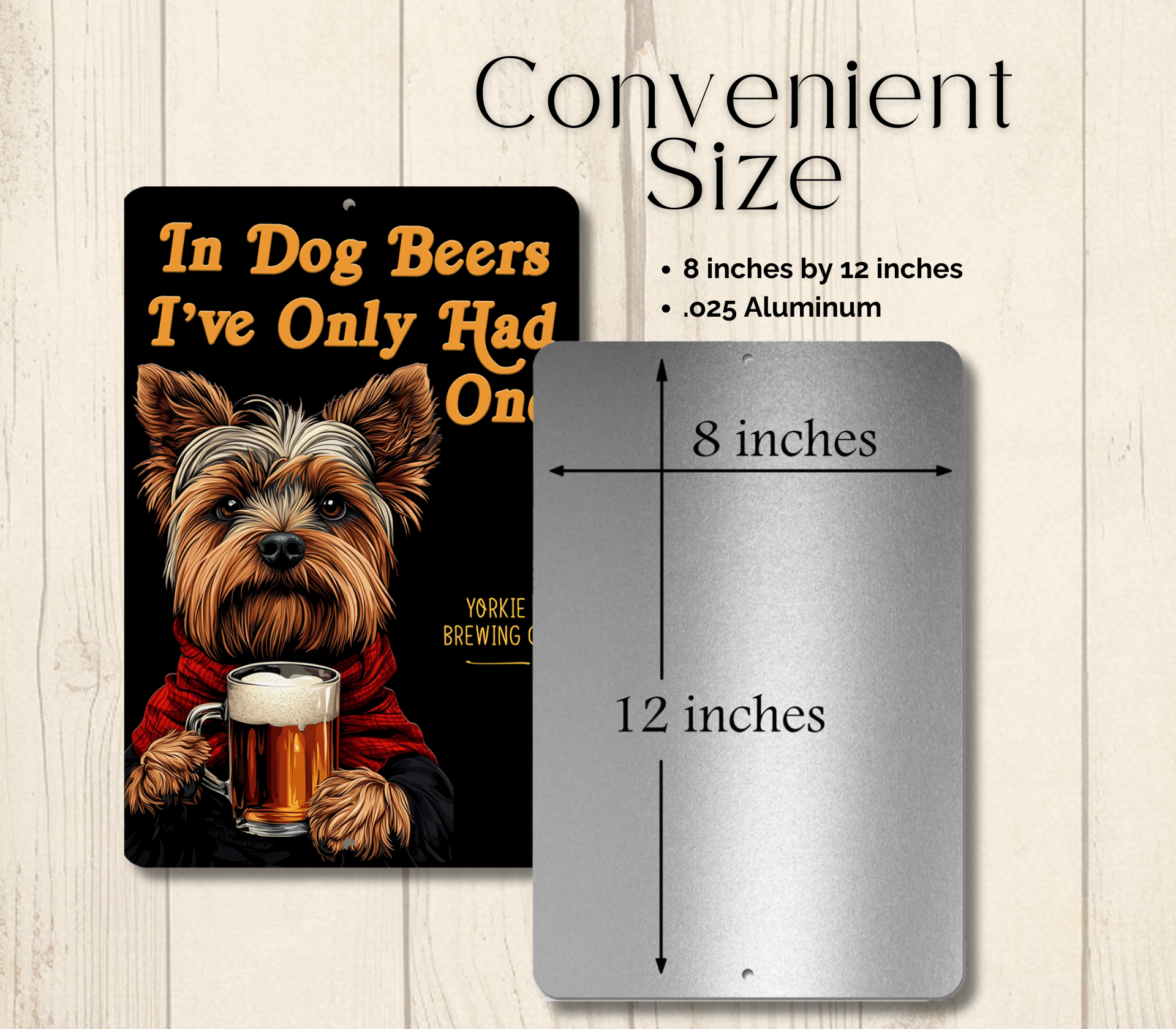 Yorkshire Terrier - Yorkie Beer Sign, In Dog Beers, I've Only Had One. Funny sign for your bar, man cave, patio, garage, whereever you drink beer! Great gift for the beer lover that loves dogs! In Dog Beers signs available for all breeds.